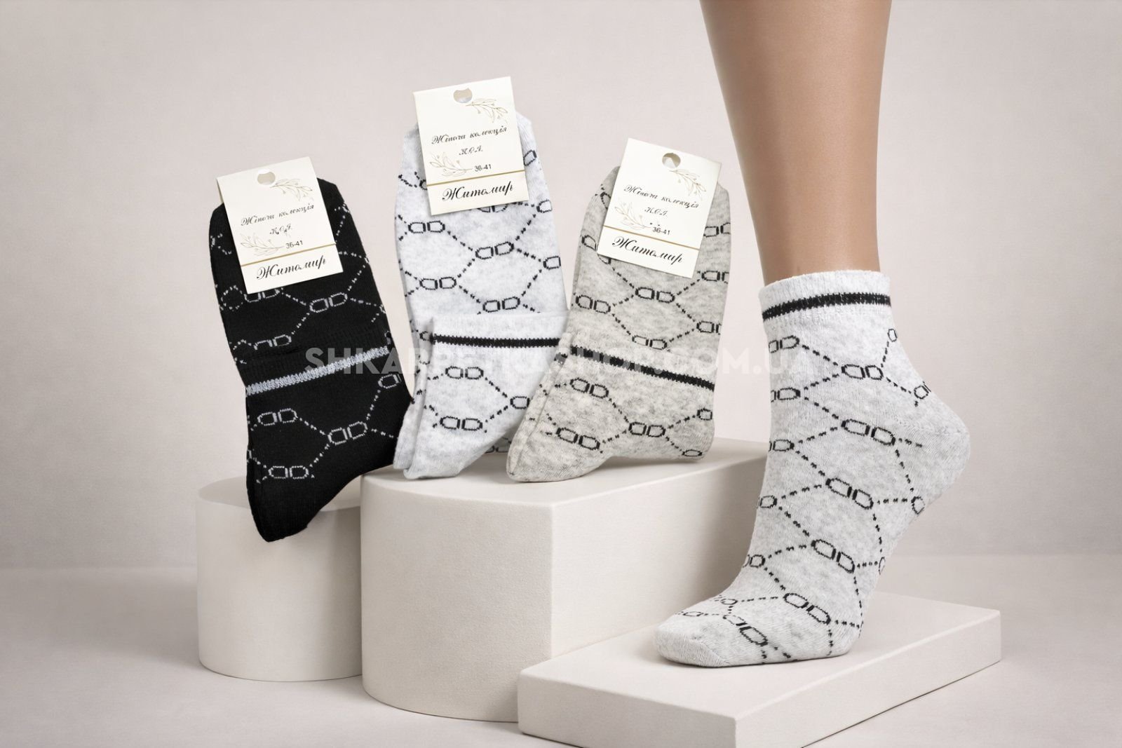 Шкарпетки Житомир "КОІ-Жіноча колекція" 121-21 стрейч жіночі, р. 36-41 -асорті -(Укорочені з візерунком з пунктирів і кружечків по всій шкарпетці) -уп. 12 шт