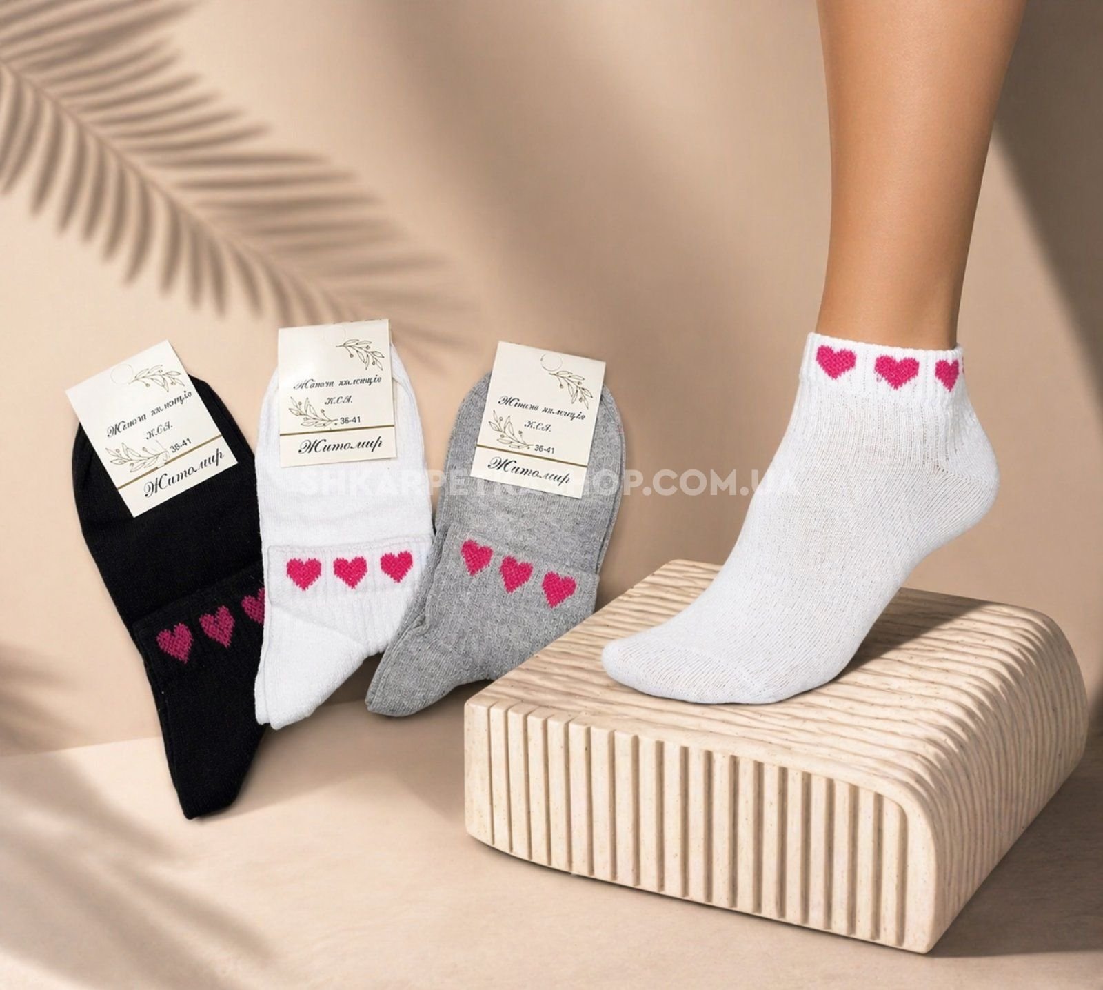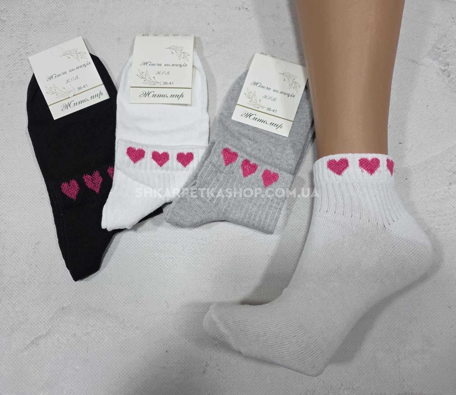 Шкарпетки Житомир "КОІ-Жіноча колекція" 121-23 стрейч жіночі, р. 36-41 -асорті -(Укорочені /однотонні +на гумці в рубчик по краю ряд сердець) -уп. 12 шт