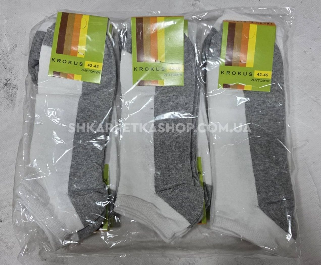 Шкарпетки Житомир "Крокус" 010-10 стрейч чоловічі, р. 42-45 -(Сірий низ + білий верх /короткі -чоловічі)