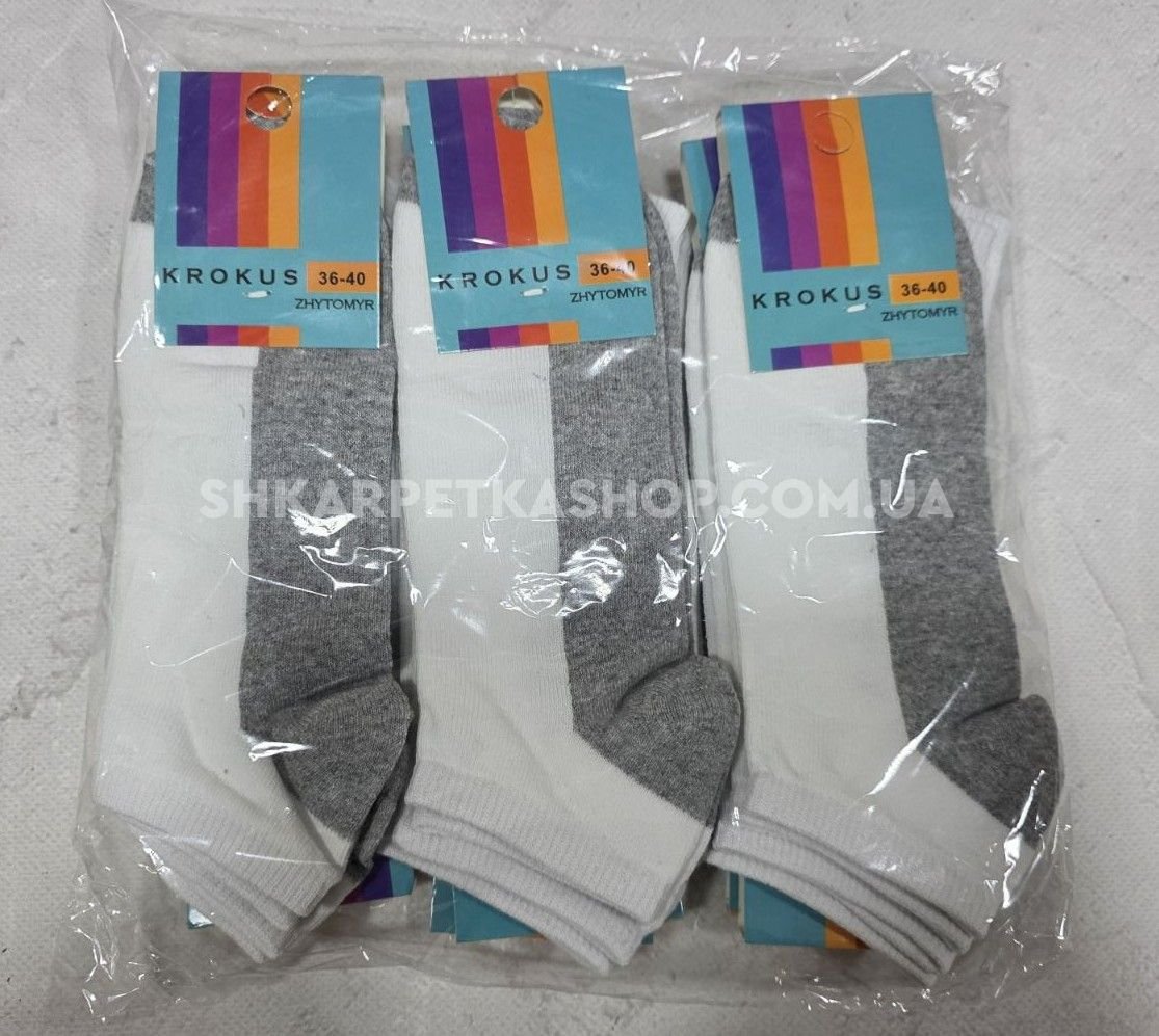 Шкарпетки Житомир "Krokus" 770-8 економ /стрейч жіночі, р. 36-40 ("економ" короткі -"комбіновані половинки" -сірий низ +білий верх -стрейч)