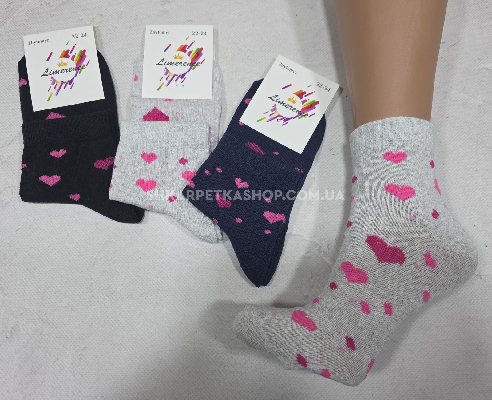 Шкарпетки Житомир "Limerence" 379-09 стрейч дитячі на розмір за довжиною стопи: 14-16, 16-18, 18-20, 20-22, 22-24 -асорті -(дівчинка -рожеві серця по всій шкарпетці -стрейч)