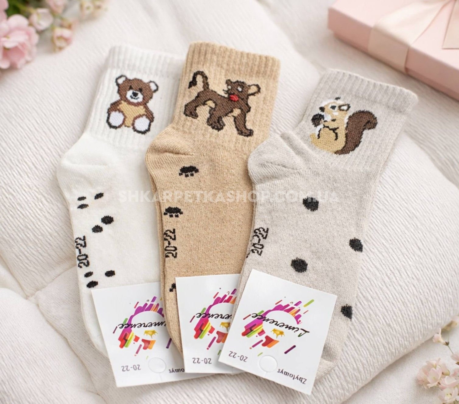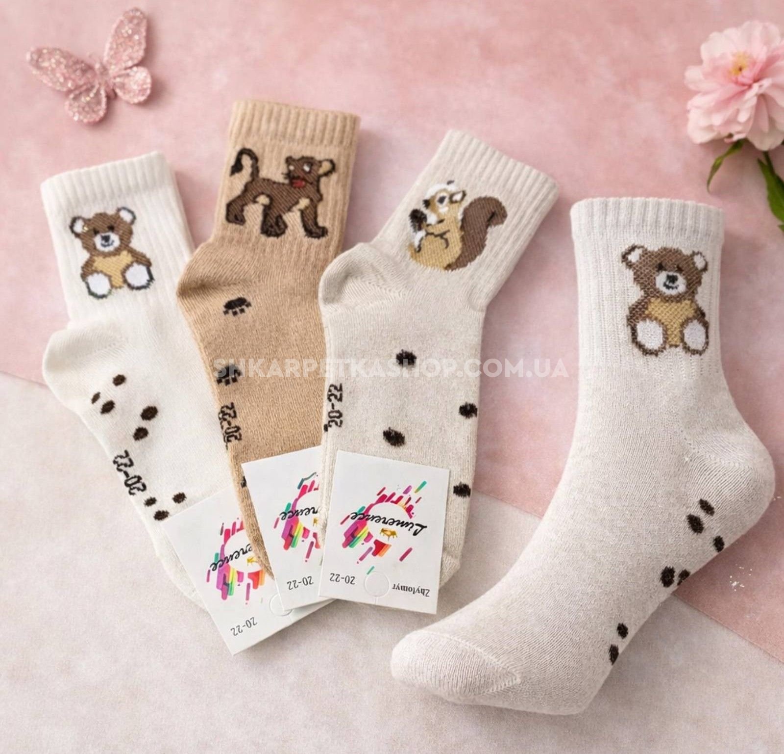 Шкарпетки Житомир "Limerence" 396-12 стрейч дитячі на розмір за довжиною стопи: 16-18, 18-20 -(середні /кавовий мікс +на широкій гумці в рубчик левеня /білка /ведмежа -стрейч) -уп. 12 шт