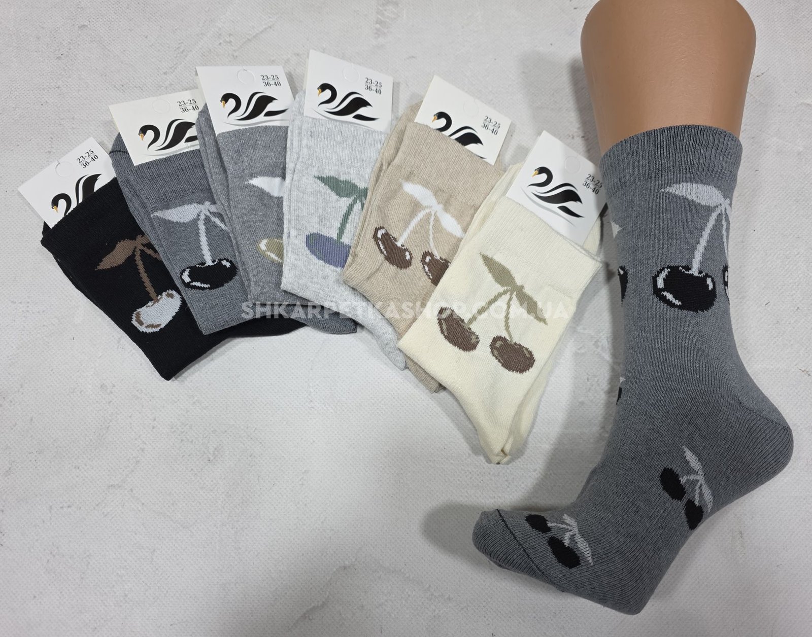 Шкарпетки Житомир "LIMERENCE" 412-57 стрейч жіночі (високі) р. 36-40 -асорті -(Високі /гладкі -сіро-кавовий мікс +великі вишні під гумкою +маленькі по всій шкарпетці -стрейч)