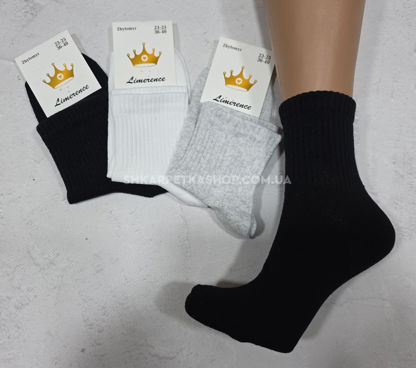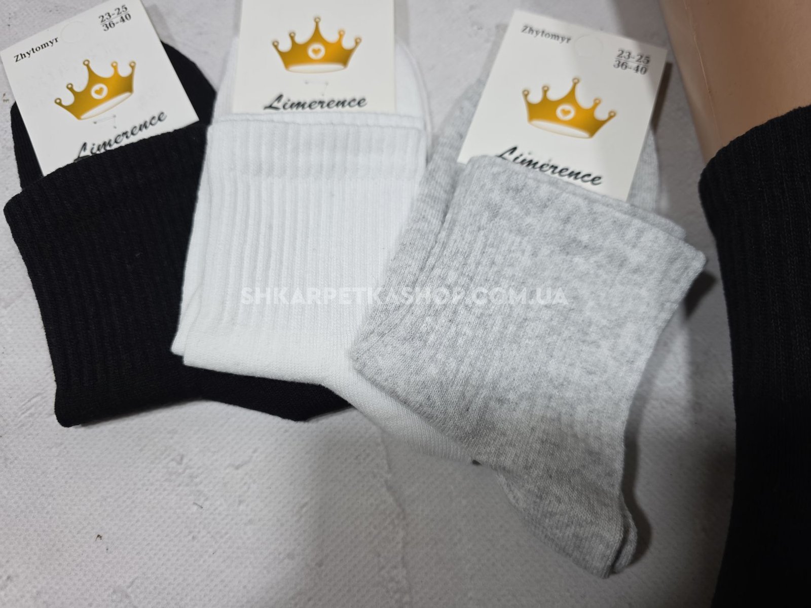 Шкарпетки Житомир "LIMERENCE" 422-20 стрейч жіночі "Теніс середні", р. 36-40 -асорті -(середні-теніс / сірий/білий/чорний з широкою гумкою в рубчик -стрейч)