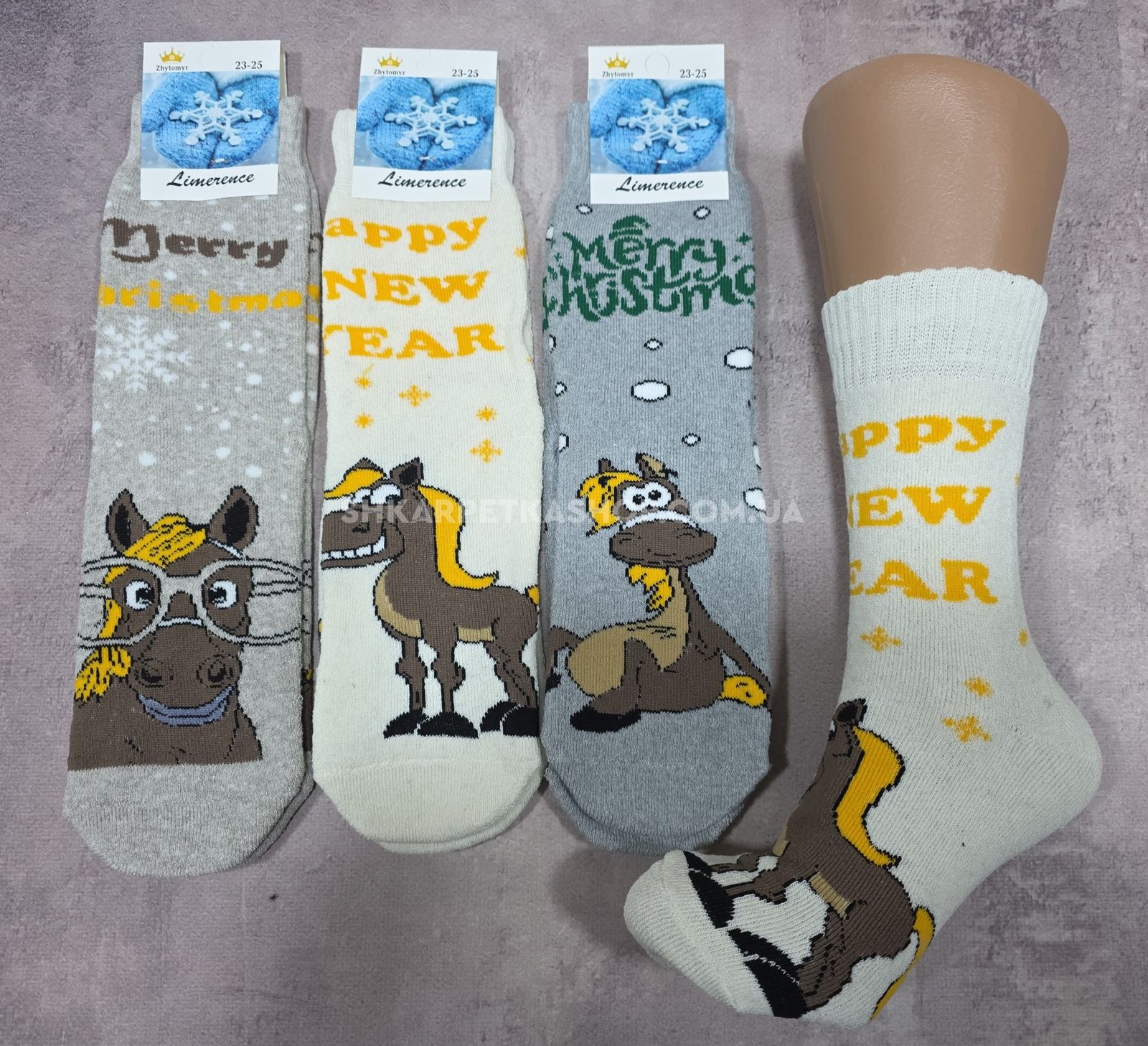 Шкарпетки Житомир "Limerence" 5960-02 махрові жіночі "Новорічні /Символ 2026 року" р. 36-40 -асорті -(Веселий мультяшний кінь) -уп. 12 шт