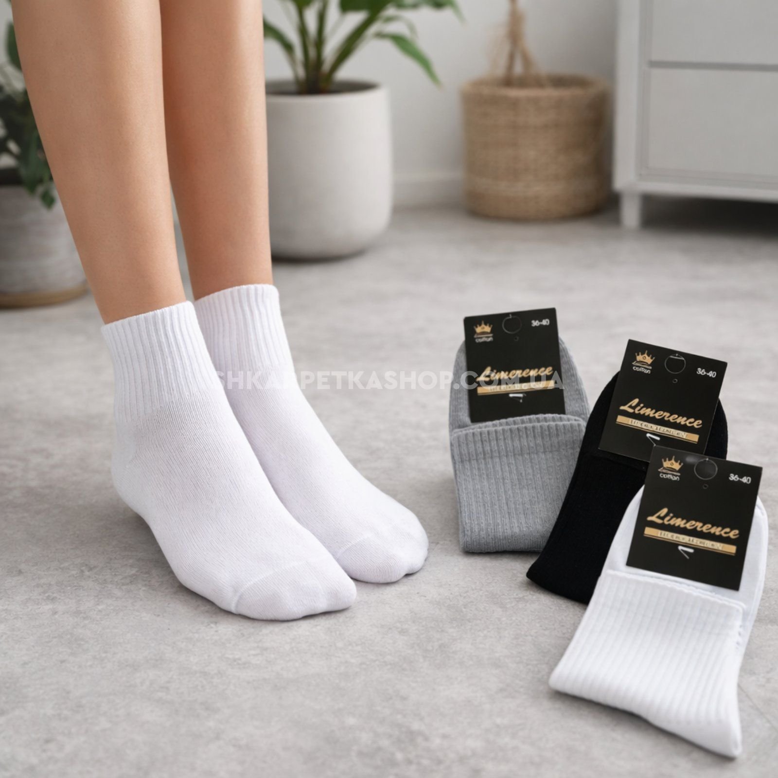 Шкарпетки Житомир "LIMERENCE LUX" 680-80 cotton /стрейч жіночі (Узбецька бавовна), р. 36-40 -асорті -(Теніс -середні LUX /однотонні з гумкою в рубчик -сірі /білі /чорні -жін.)