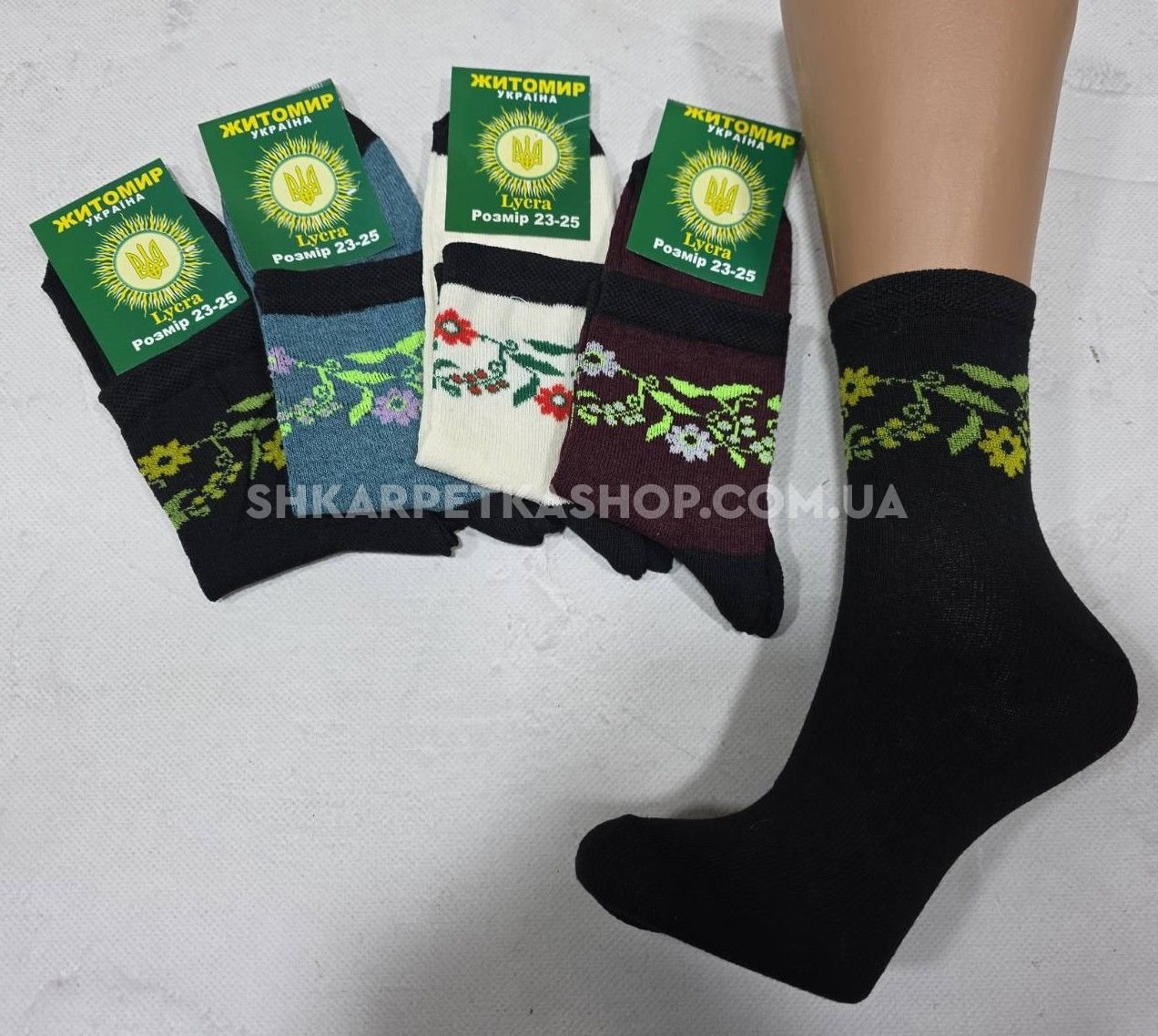 Шкарпетки "Житомир Преміум" 112-8 стрейч жіночі, р. 23-25 -випадкове асорті -(Однотонні +під гумкою квітковий орнамент) -уп. 12 шт