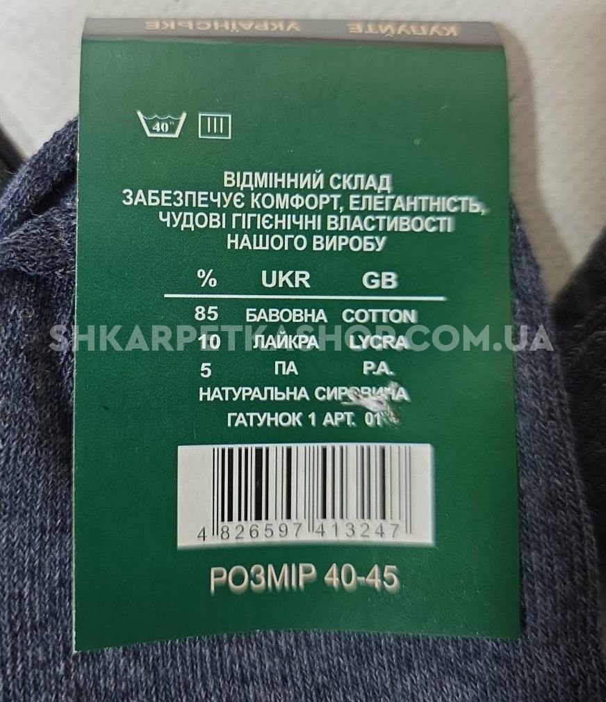 Шкарпетки Житомир "Преміум" 307-1-О стрейч чоловічі, р. 40-45 -(Однотонні +на гумці в рубчик вішивка Elite -стрейч) -уп. 12 шт