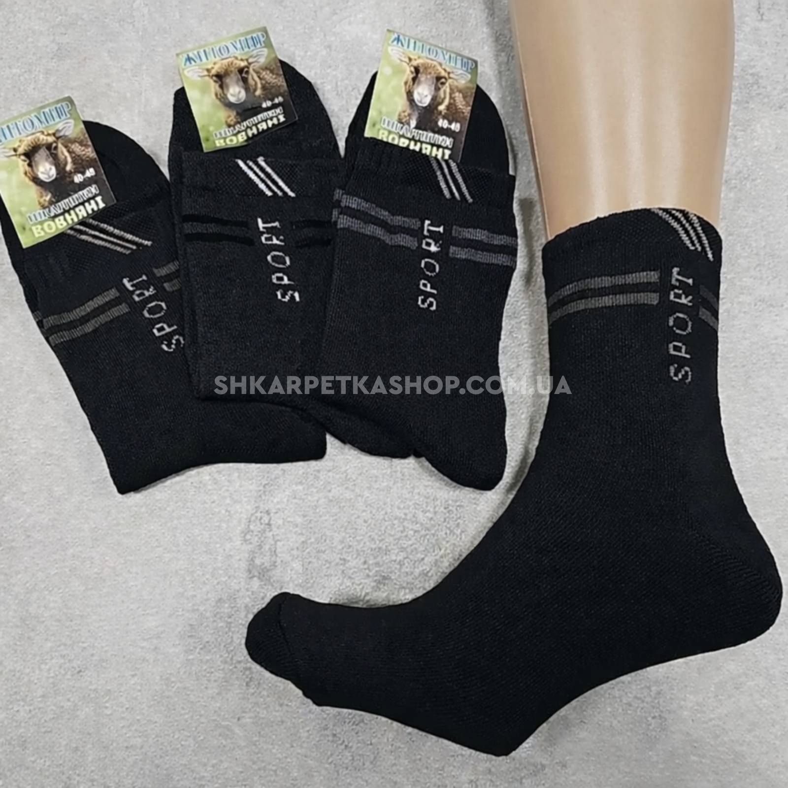 Шкарпетки Житомир "Преміум /ВОВНЯНІ" 3003-61 махрові чоловічі, р. 40-45 -(Махра -чорні +напис Sport +різні смужки) -уп. 12 шт