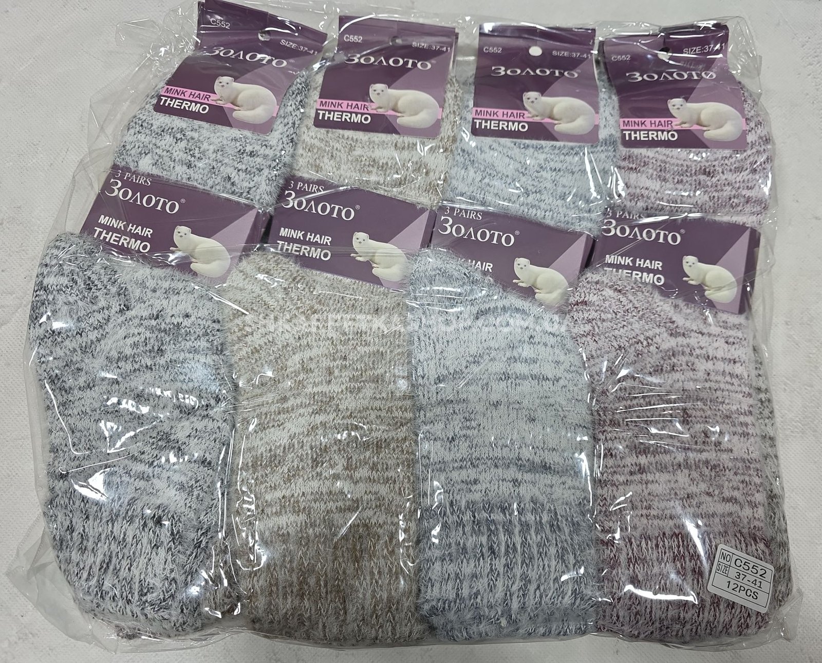 Шкарпетки "Золото" С-552 норка +шерсть на махровій основі жіночі, р. 37-41 асорті -(меланжеві -в'язані -жін.) -уп. 12 шт