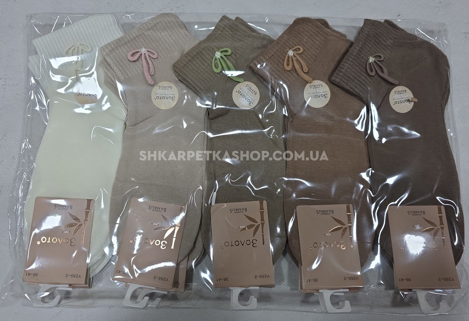 Шкарпетки "Золото" Y-255-2 стрейч/ бамбук жіночі ароматизовані, р. 36-41 -асорті -(Укорочені /кавовий мікс +збоку на середній гумці в рубчик бантик) -уп. 10 шт