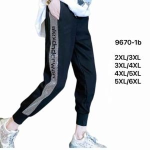 Штани прогулянкові "Kenalin" 9670-11 низ на широкому манжеті +з боків широкі лампаси з камінчиків з написами, з боків кишені, р. 2XL/3XL-(46-50), 3XL/4XL-(48-52) -(чорні)