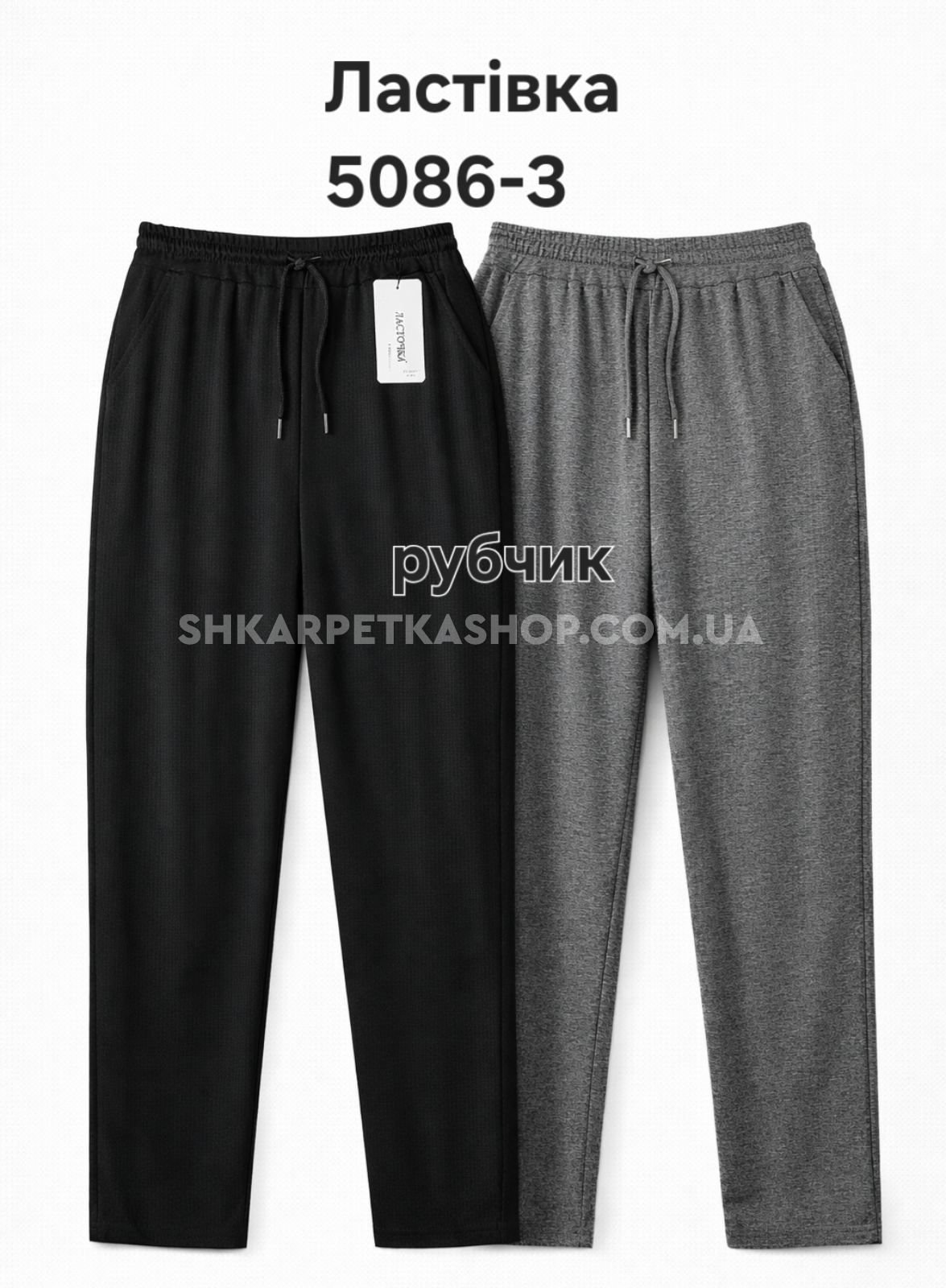 Прогулянкові штани "Ластівка" 5086-3 трикотажні в дрібний рубчик +з прямим низом +з боків кишені, р. 5XL-(50-54), 6ХL-(52-56) -уп. 1 шт