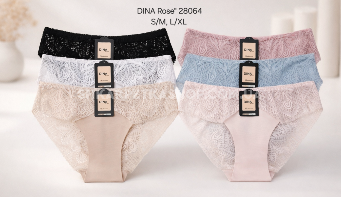 Жіночі труси "DINA Rose" 28064 бавовняні, р. S/M, L/XL -(46-48, 48-50) -асорті -(однотонні +під гумкою і ззаду мереживо) -уп. 12 шт
