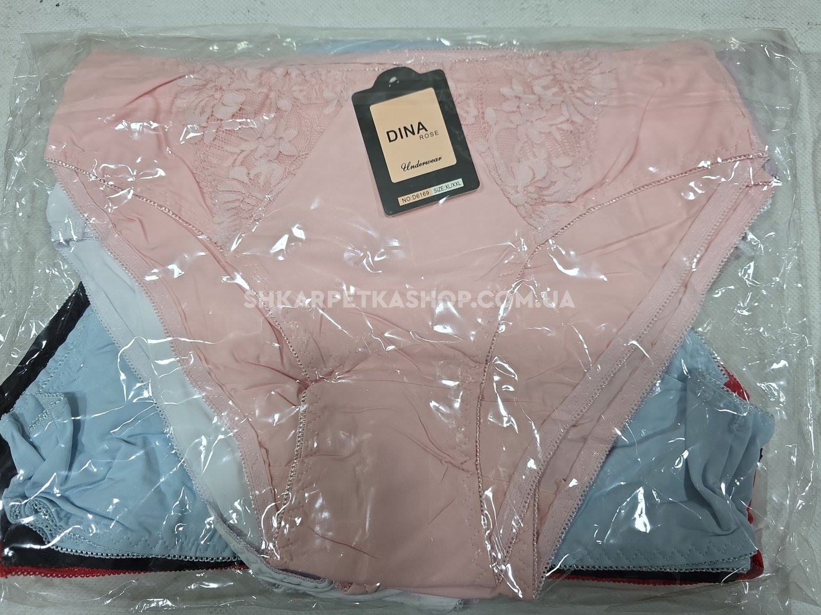 Жіночі труси "DINA Rose" 6169 шовковисті нейлонові, р. M/L, XL/2XL -(46-48, 48-50) -асорті -(однотонні +спереду гіпюрові вставки) -уп. 12 шт