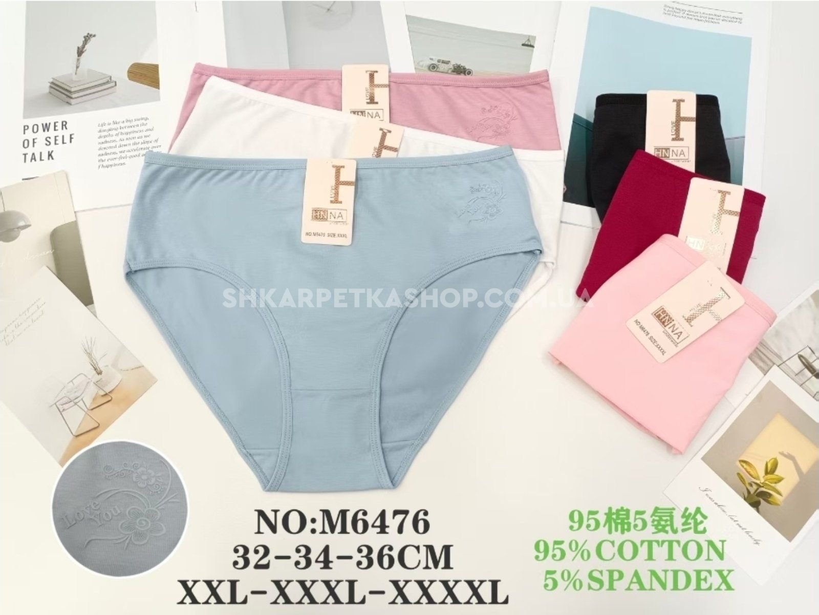 Жіночі труси "HNNA" New М-6476 cotton, р. 2XL, 3XL, 4XL -(48, 50, 52) -асорті -(Однотонні) -уп. 12 шт