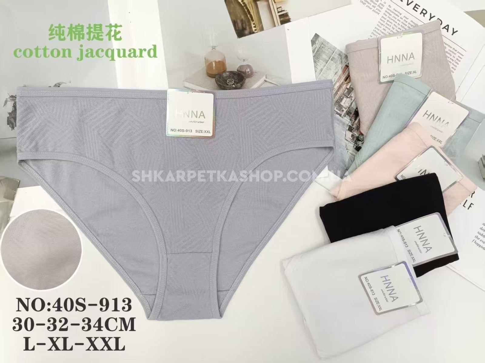 Жіночі труси "HNNA" 40-S-913 cotton, р. L, xl, 2xl -(44, 46, 48) -асорті -(Однотонні з рельєфним візерунком у ромби) -уп. 12 шт