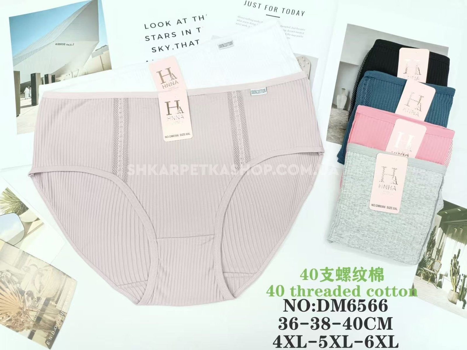 Жіночі труси "HNNA" DM-6566 cotton, р. 4XL, 5XL, 6XL -(50-52, 52-54, 54-56) -асорті -(Однотонні в рубчик спереду тонкі вставки з сіткою) -уп. 12 шт