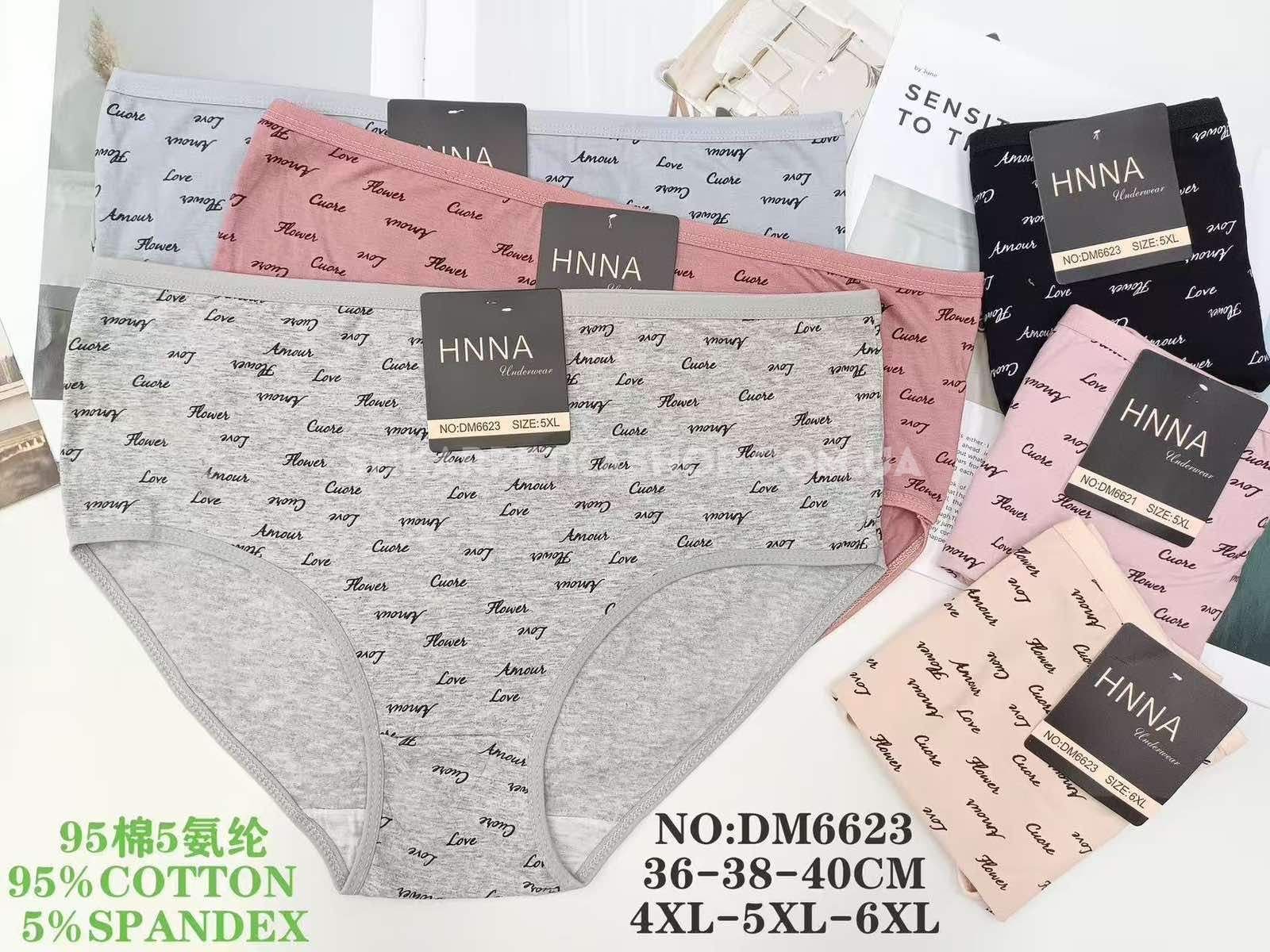 Жіночі труси "HNNA" DM-6623 cotton, р. 4XL, 5XL, 6XL -(50-52, 52-54, 54-56) -асорті -(Однотонні у дрібні написи) -уп. 12 шт
