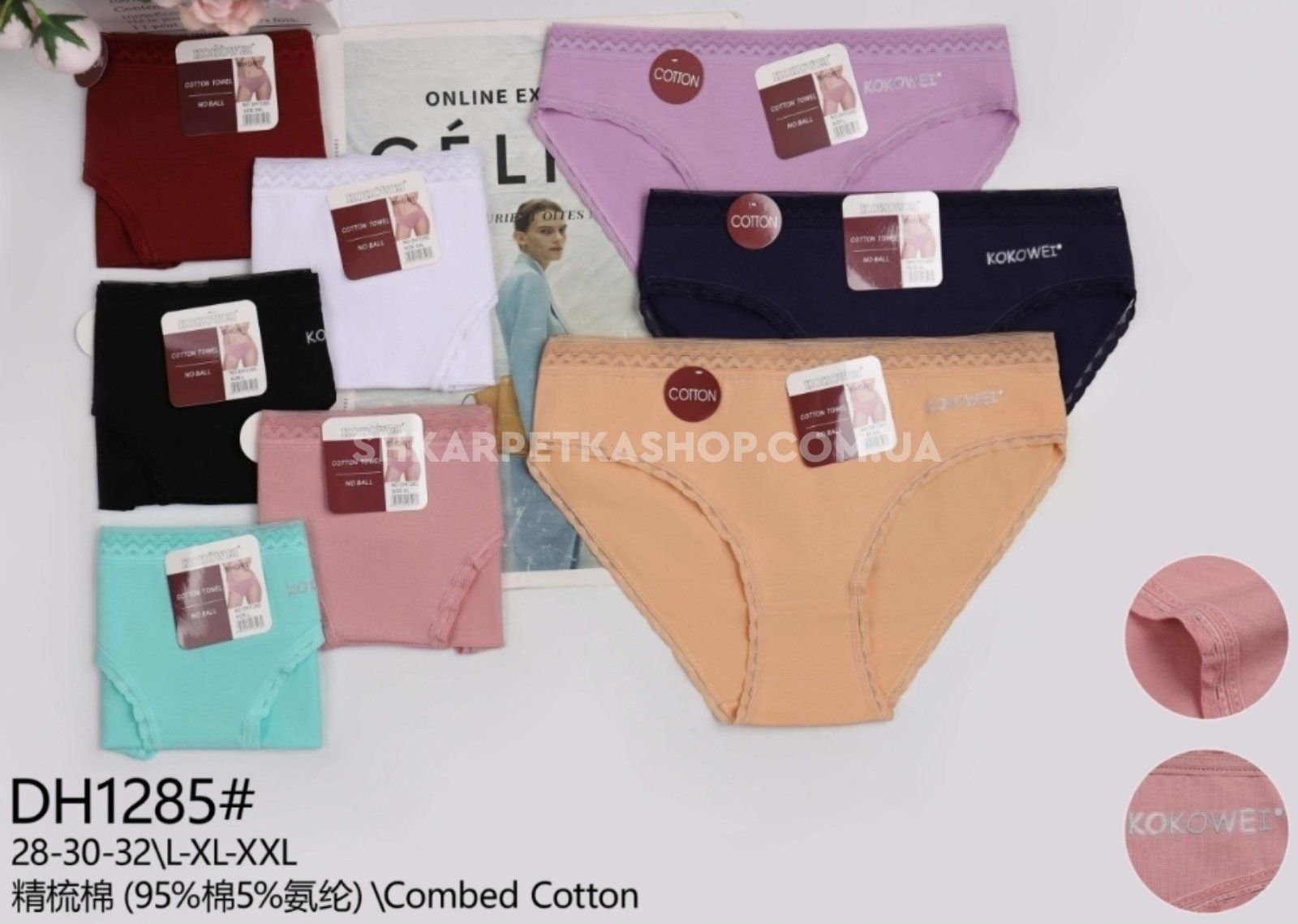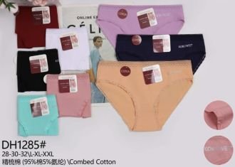 Жіночі труси "Kokowei" DH-1285 cotton, р. L, xl, 2xl -(42, 44, 46) -асорті -(Однотонні +прозора гумка з зигзагом +збоку напис Kokowei) -уп. 12 шт