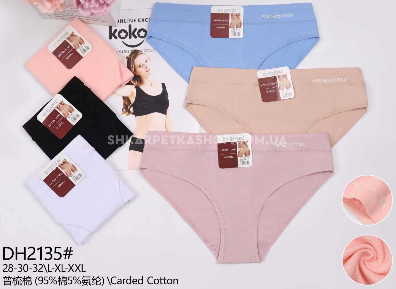 Жіночі труси "Kokowei" DH-2135 cotton, р. L, xl, 2xl -(44, 46, 48 -асорті -(Однотонні + збоку напис 100% cotton) -уп. 12 шт