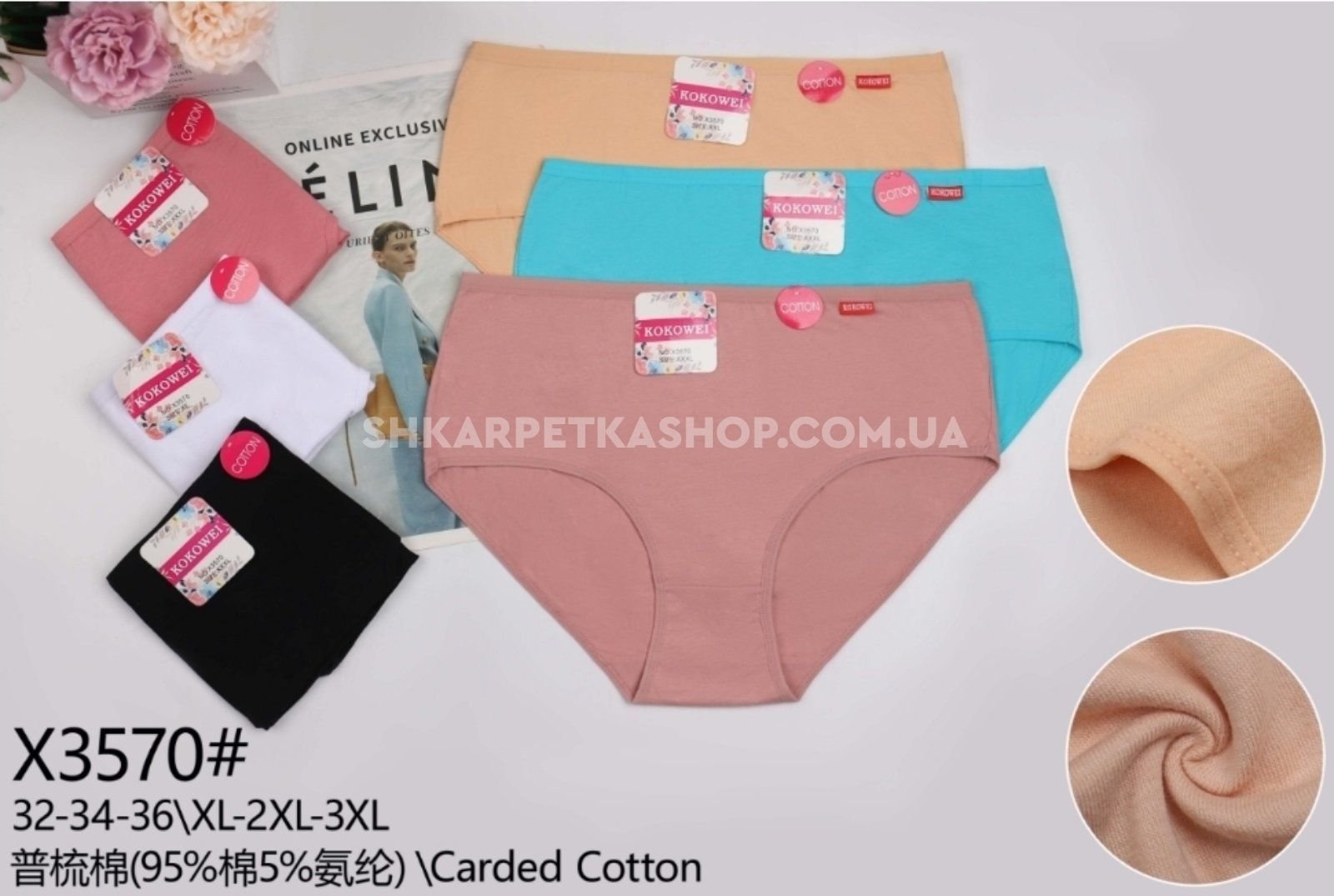 Жіночі труси "Kokowei" New Х-3570 cotton, р. ХL, 2XL, 3XL -(48, 50, 52) -асорті -(Однотонні) -уп. 12 шт