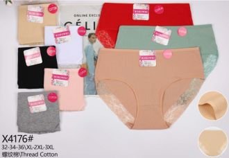 Жіночі труси "Kokowei" New Х-4176 cotton, р. ХL, 2XL, 3XL -(48, 50, 52) -асорті -(Однотонні в рубчик з мереживом) -уп. 12 шт
