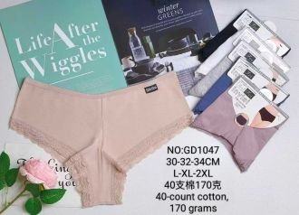 Жіночі труси "MO Fei" GD-1047 cotton, р. L, xl, 2xl -(44-46, 46-48, 48-50) -асорті -(Однотонні +з тонкою гумкою +з мереживом по ніжці) -уп. 12 шт