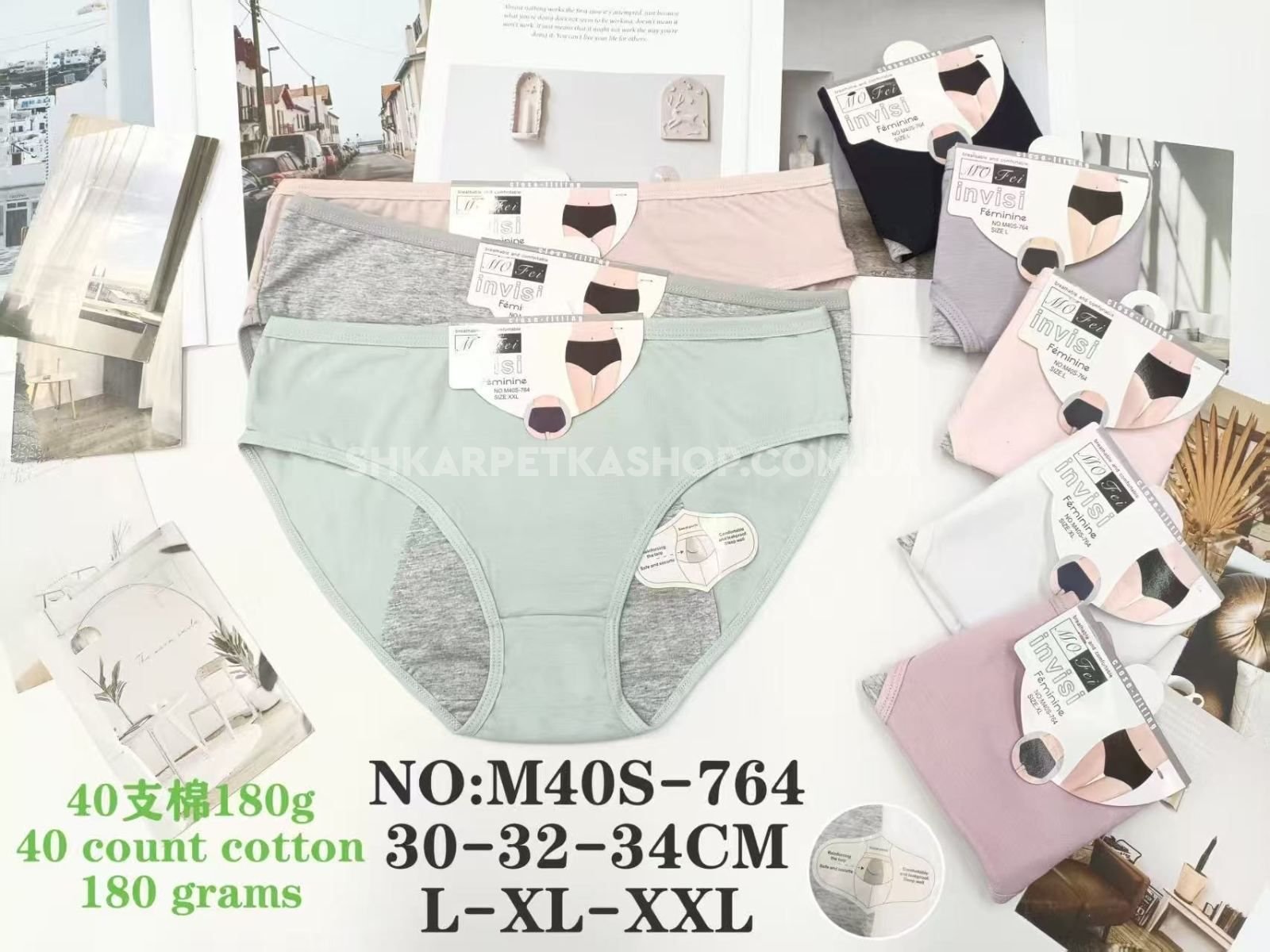 Жіночі труси "MOFEI invisi" M40S-764 бавовняні "для критичних днів" із захистом при критичних днях, р. L, XL, 2XL -(44-46, 46-48, 48-50 ) -асорті -(Однотонні) -уп. 12 шт