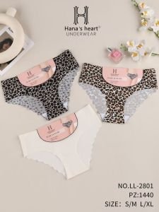 Жіночі труси "Н /Hana`s heart /Invisi" LL-2801 мікрофібра з лазерною обробкою, р. S/M, L/XL -(46-48, 48-50) -випадкове асорті -(Мікс/ Тигрові +однотонні +позаду з хвилястими краями) -уп. 12 шт