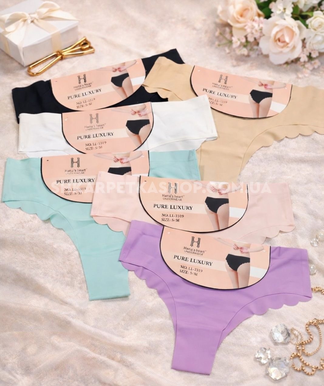 Жіночі труси "Н /Hana`s heart /Invisi" LL-3319 безшовні мікрофібра з лазерною обробкою, р. S/M, L/XL -(44-46, 46-48) -випадкове асорті -(однотонні з хвилястими краями) -уп. 24 шт
