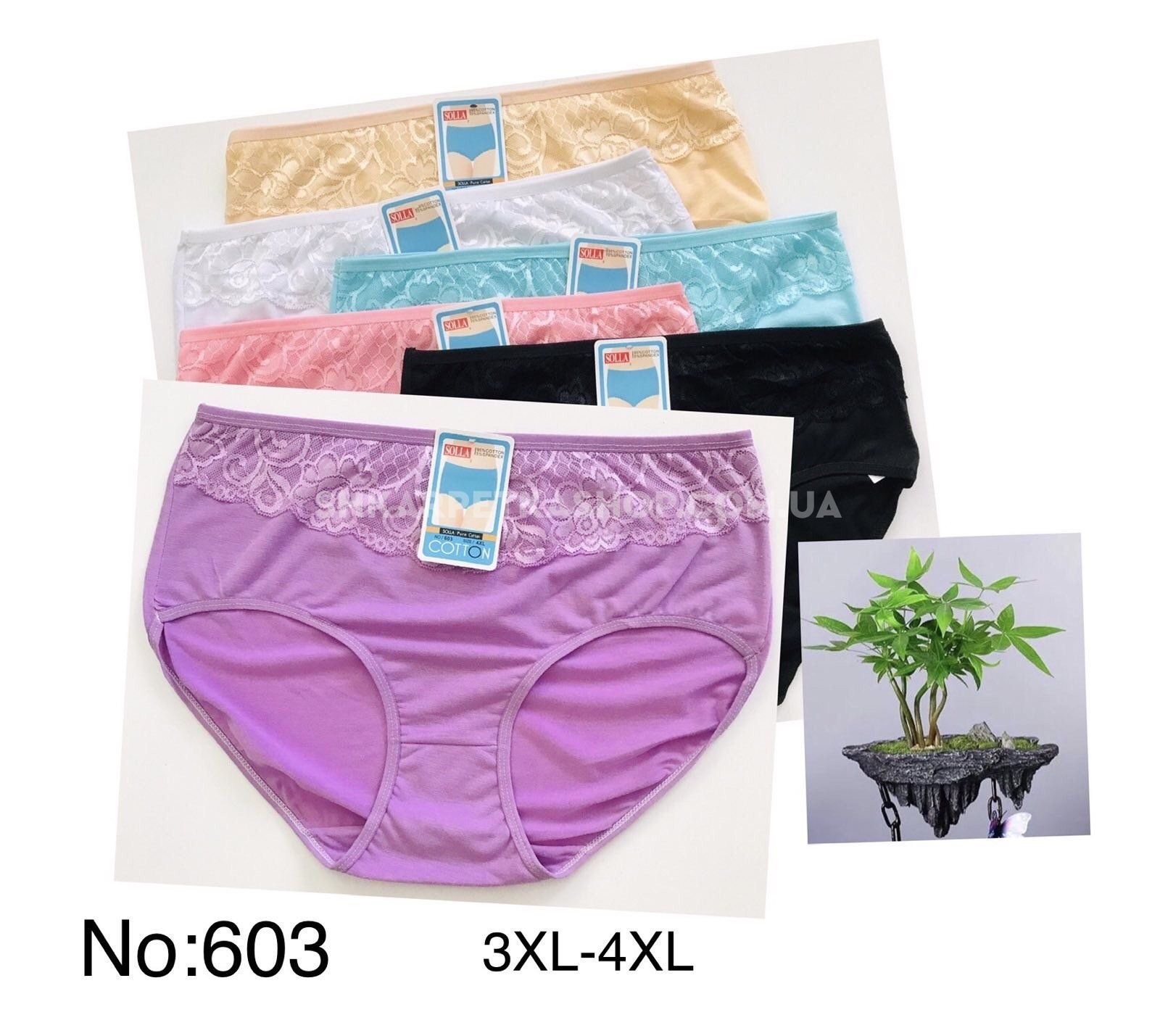 Жіночі труси "Sola Cotton" 603 cotton, р. 3ХL, 4ХL -(48, 50) -асорті -(Однотонні +під гумкою мереживо) -уп. 12 шт