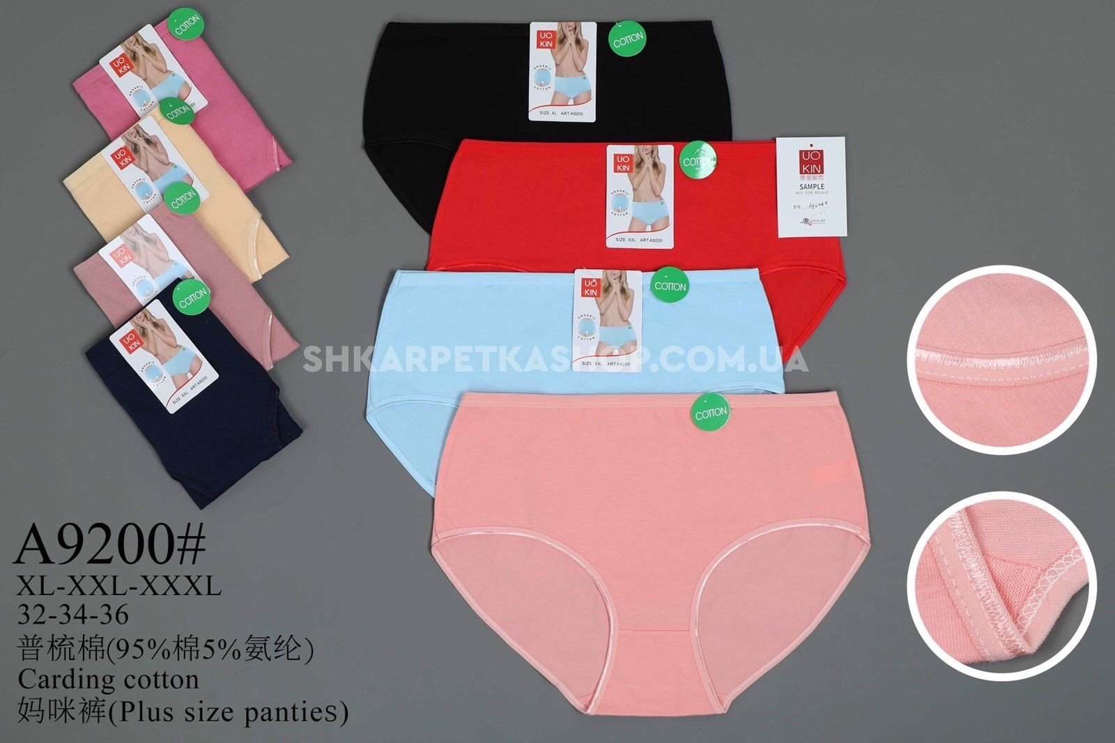 Жіночі труси "UO KАN" А-9200 cotton, р. ХL, 2ХL, 3ХL -(46-48, 48-50, 50-52) -асорті -(Однотонні) -уп. 12 шт