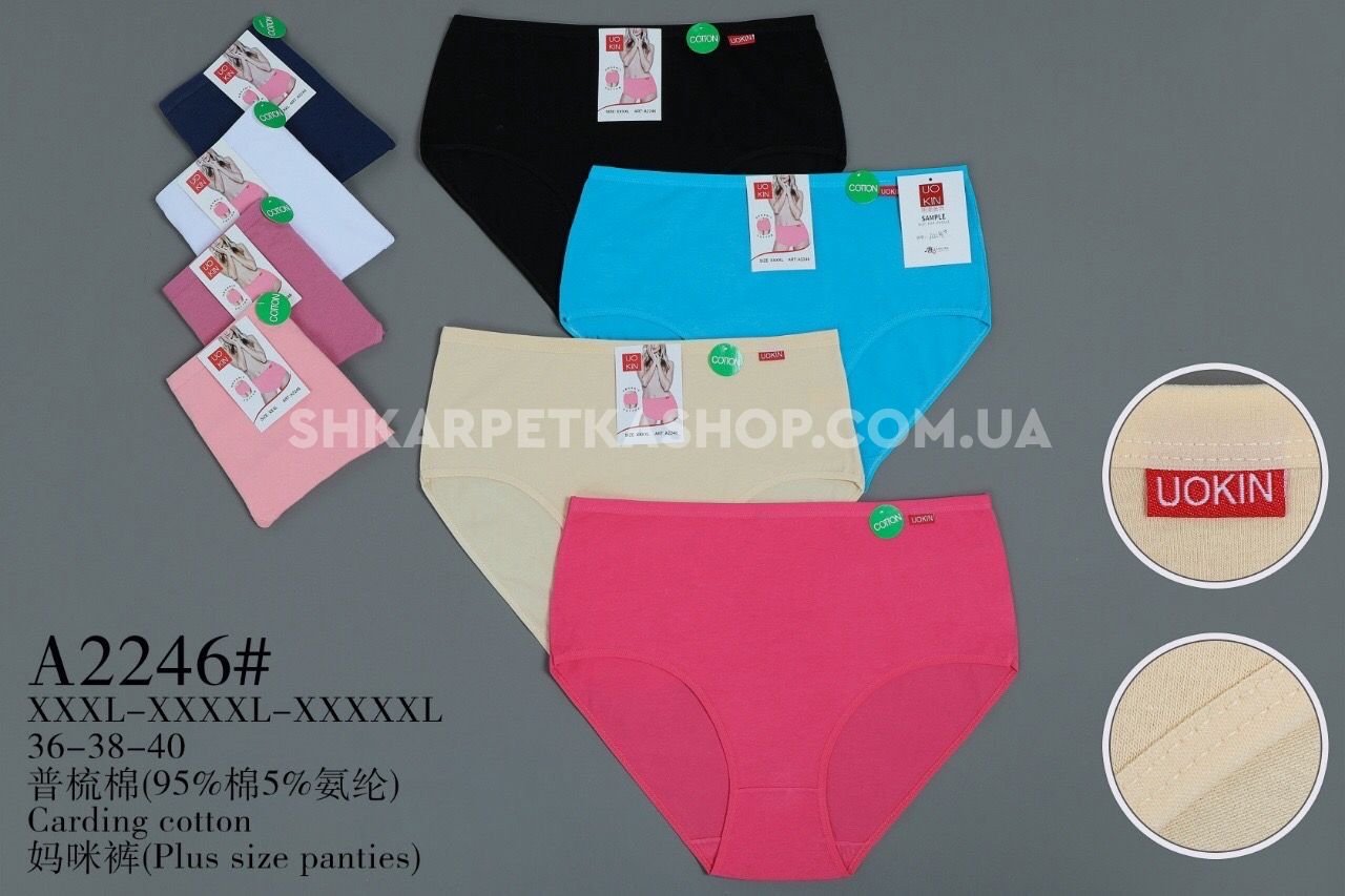 Жіночі труси "UOKIN" А-2246 cotton, р. 3ХL, 4ХL, 5ХL -(50-52, 52-54, 54-56) -асорті -(Однотонні) -уп. 12 шт
