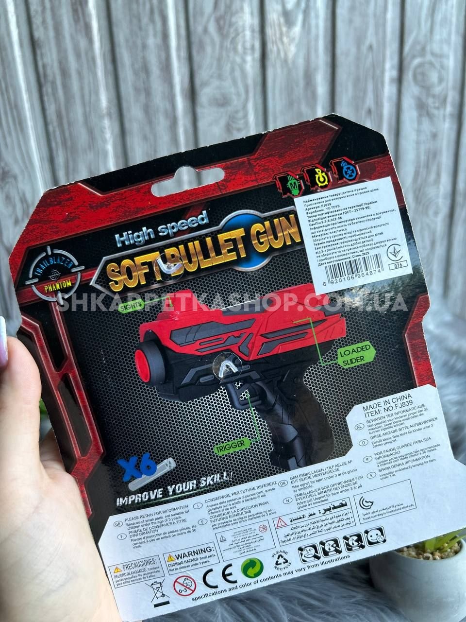 Кожному маленькому супергероєві необхідна його фантастична зброя. 6-зарядний бластер від компанії QUNXING TOYS підійде дитині від 6-ти років. Бластер дарує не лише радість від гри дитині, але і спокій батькам, адже сама іграшка виготовлена з якісного пластику, а кулі з м'якої гуми. Саме тому він є повністю безпечним для здоров'я дитини й усіх навколо. У комплект входить: бластер (розмір вироби: 10.5 х 4.5 х 10.5 см); 6 снарядів (розмір 1 кулі: 1 х 7 х 1 см).