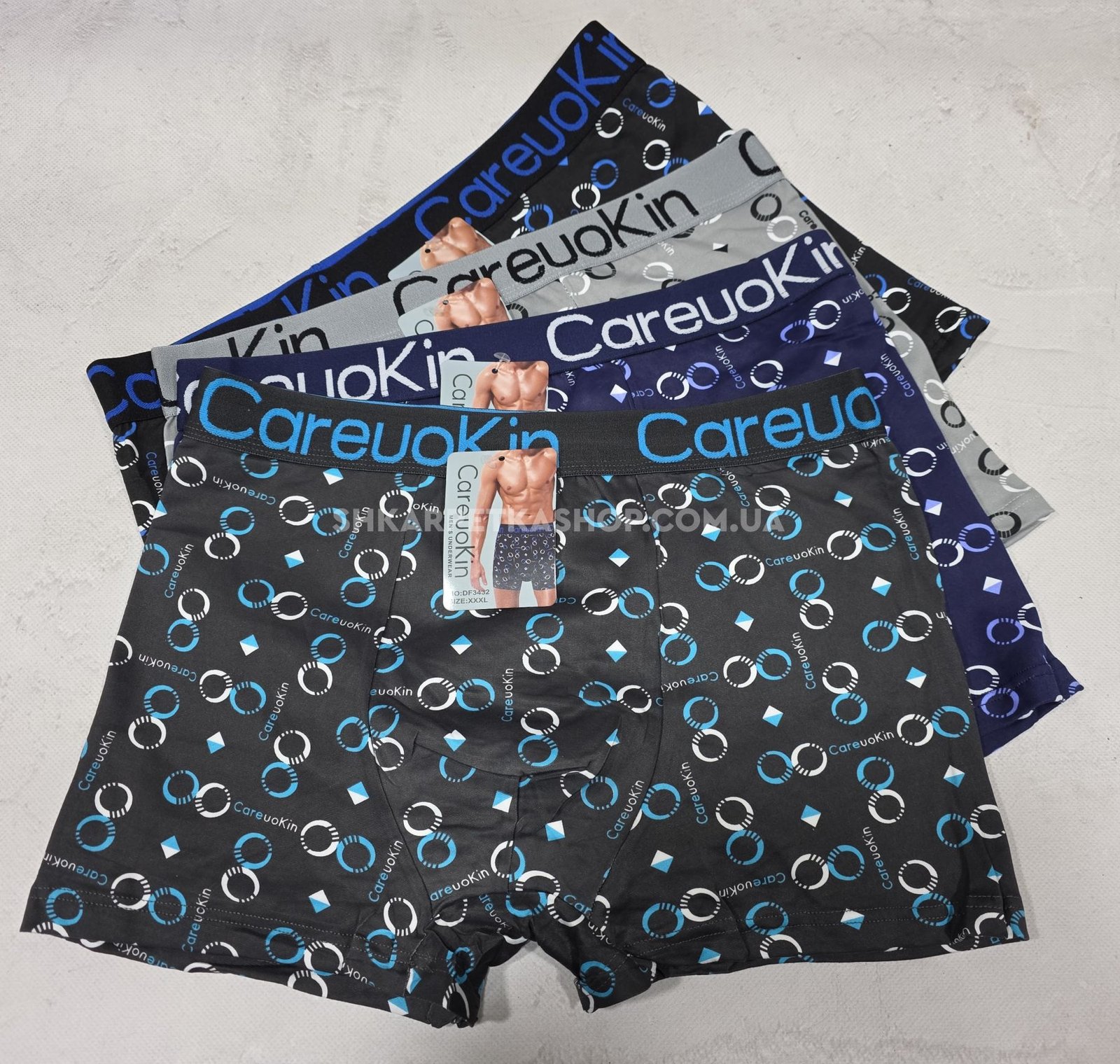 Боксери "CareuoKin" DF-3432 palyester /spandex, р. XL, 2XL, 3XL - уп. 12 шт -мікс