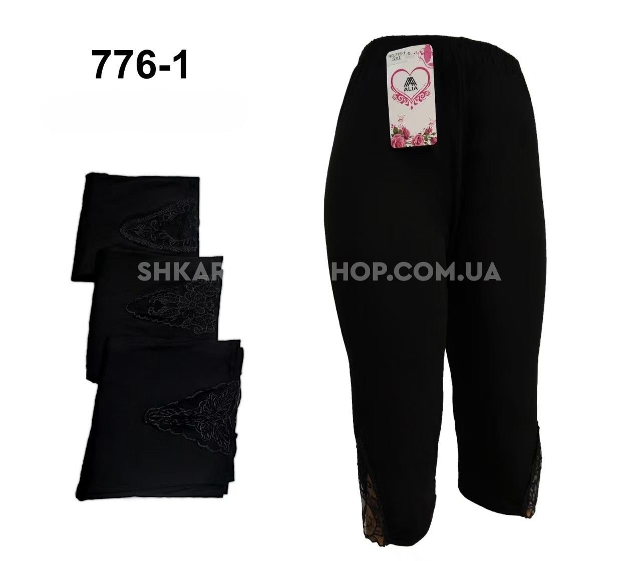 Бриджі "Алія /ALIA" 776-1 бавовняні +знизу з боків вишивка з сіточкою, р. 3XL-(50-54), 4XL-(52-56), 5XL-(54-58) -(чорні)