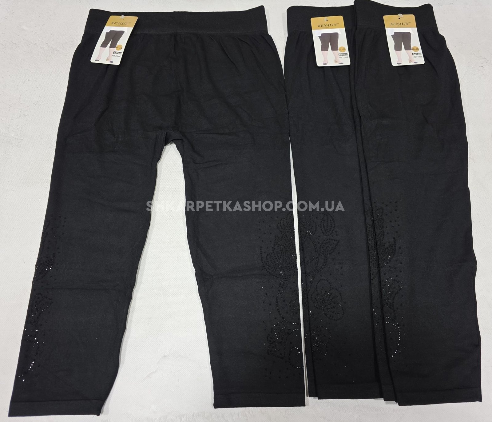 Бриджі "Kenalin" 7100В -батал безшовні +з боків візерунок з камінчиків, р. 4ХL/8XL-(50-56) -(Чорні)
