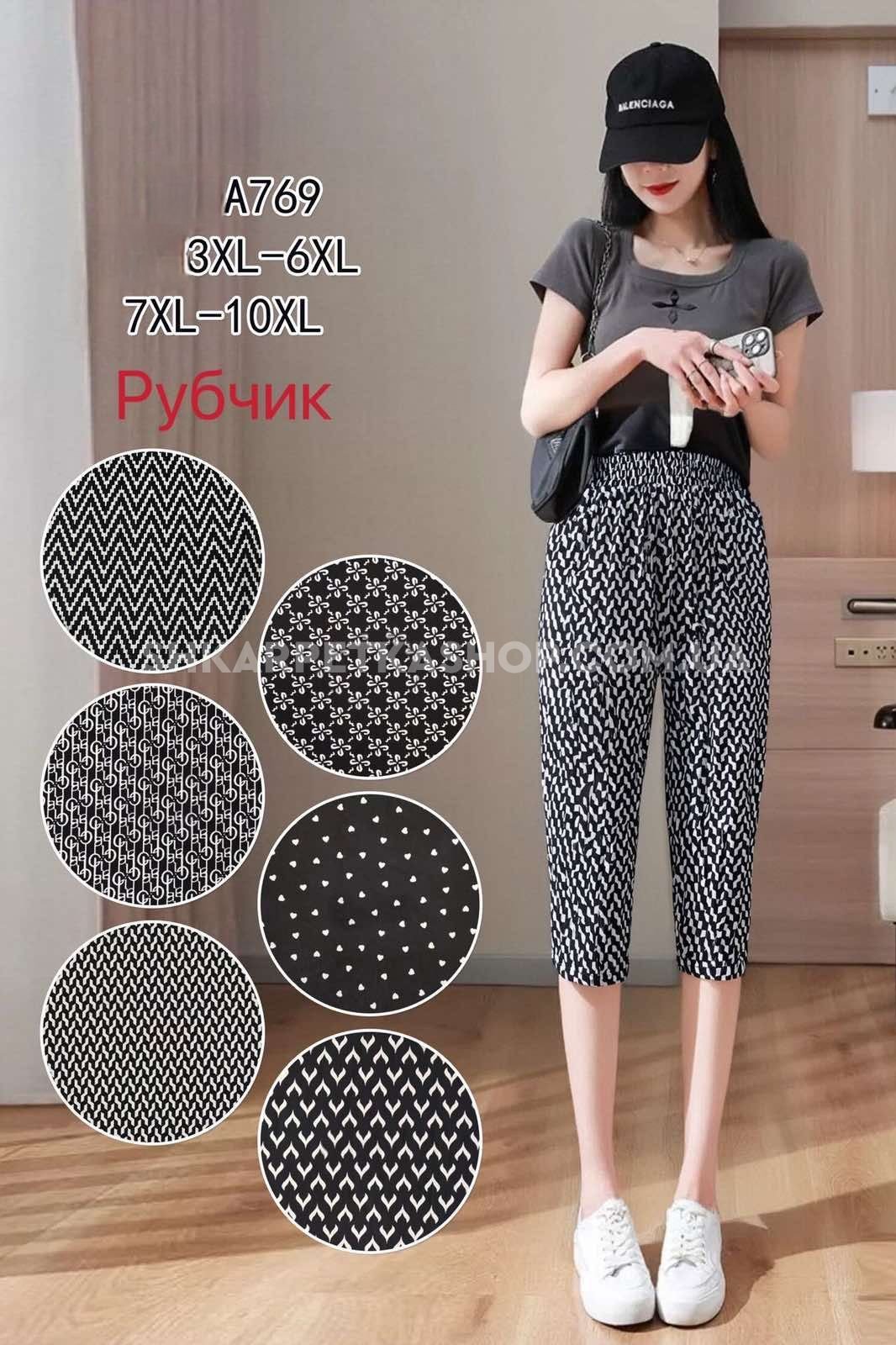 Бриджі-султанки "ЗОЛОТО" 769 у рубчик з легкої шовковистої тканини +з боків кишені, р. 3XL/6XL-(46-50) -(Чорно-білий мікс -без вибору забарвлення!!!)