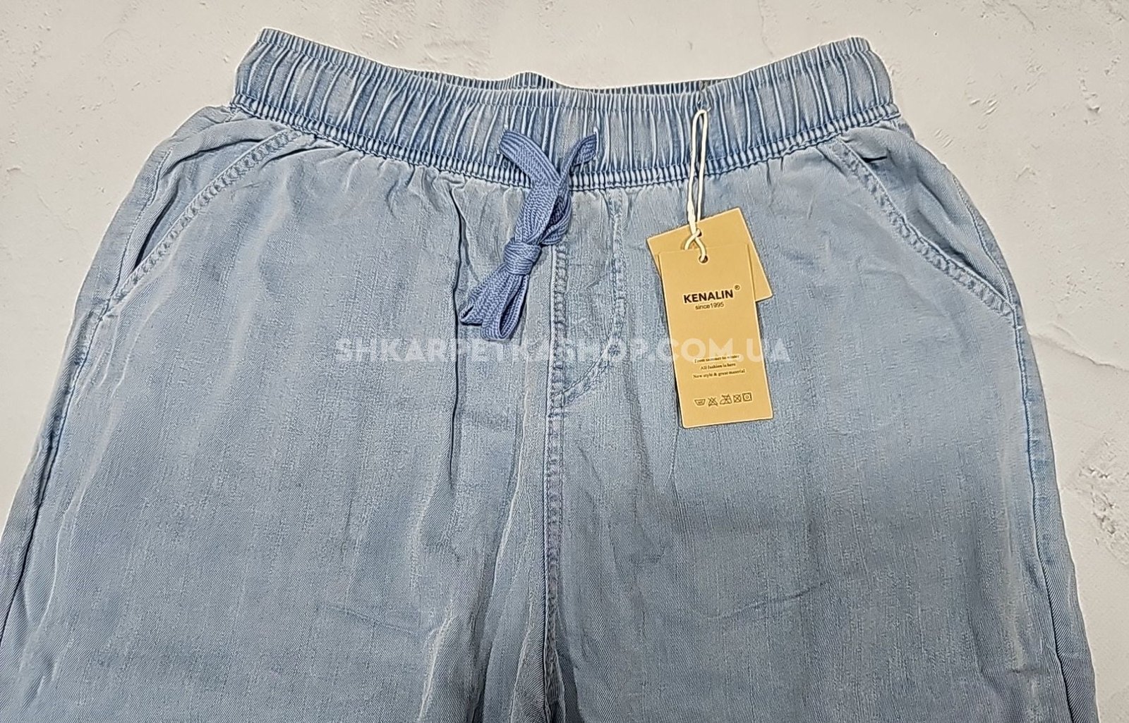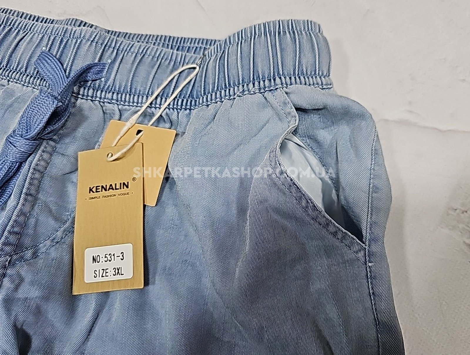 Джинси "Kenalin" 531-3 з полегшеного стрейч-котону, спереду та ззаду кишені, пояс на гумці, р. 3XL-(46-48), 4XL-(48-50) -(Блакитний мікс -Без вибору відтінку!!!)