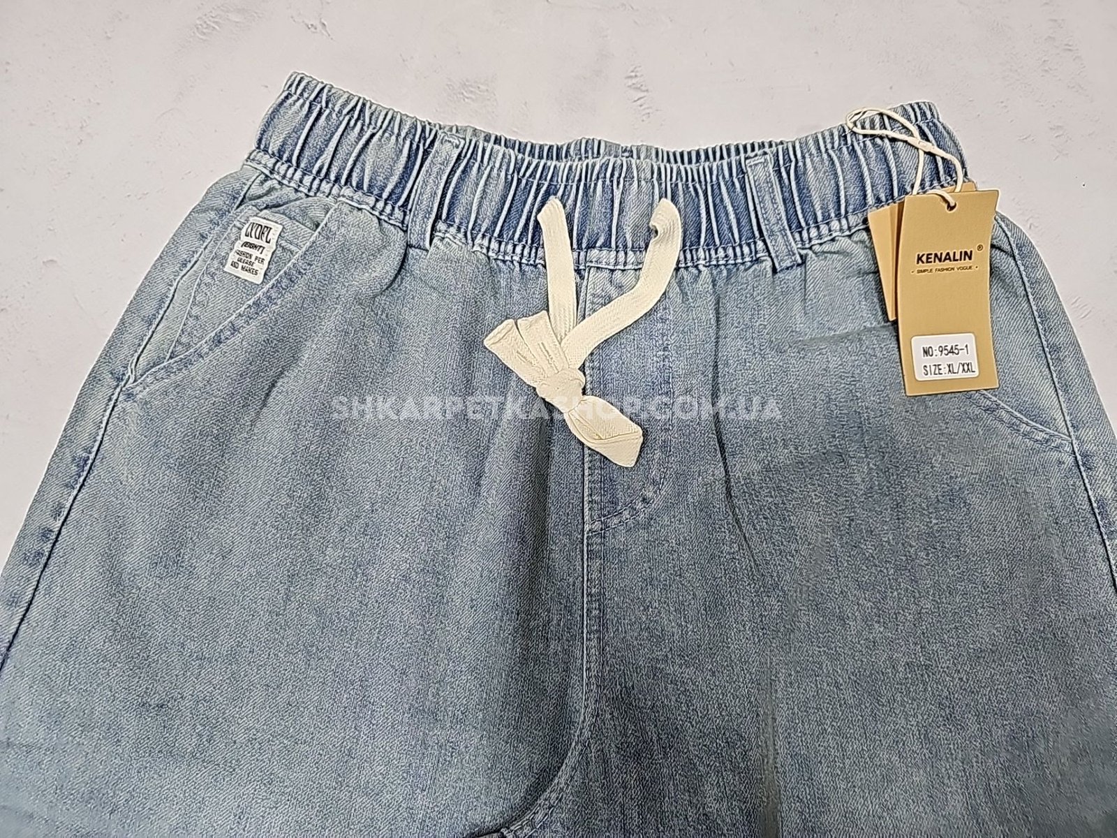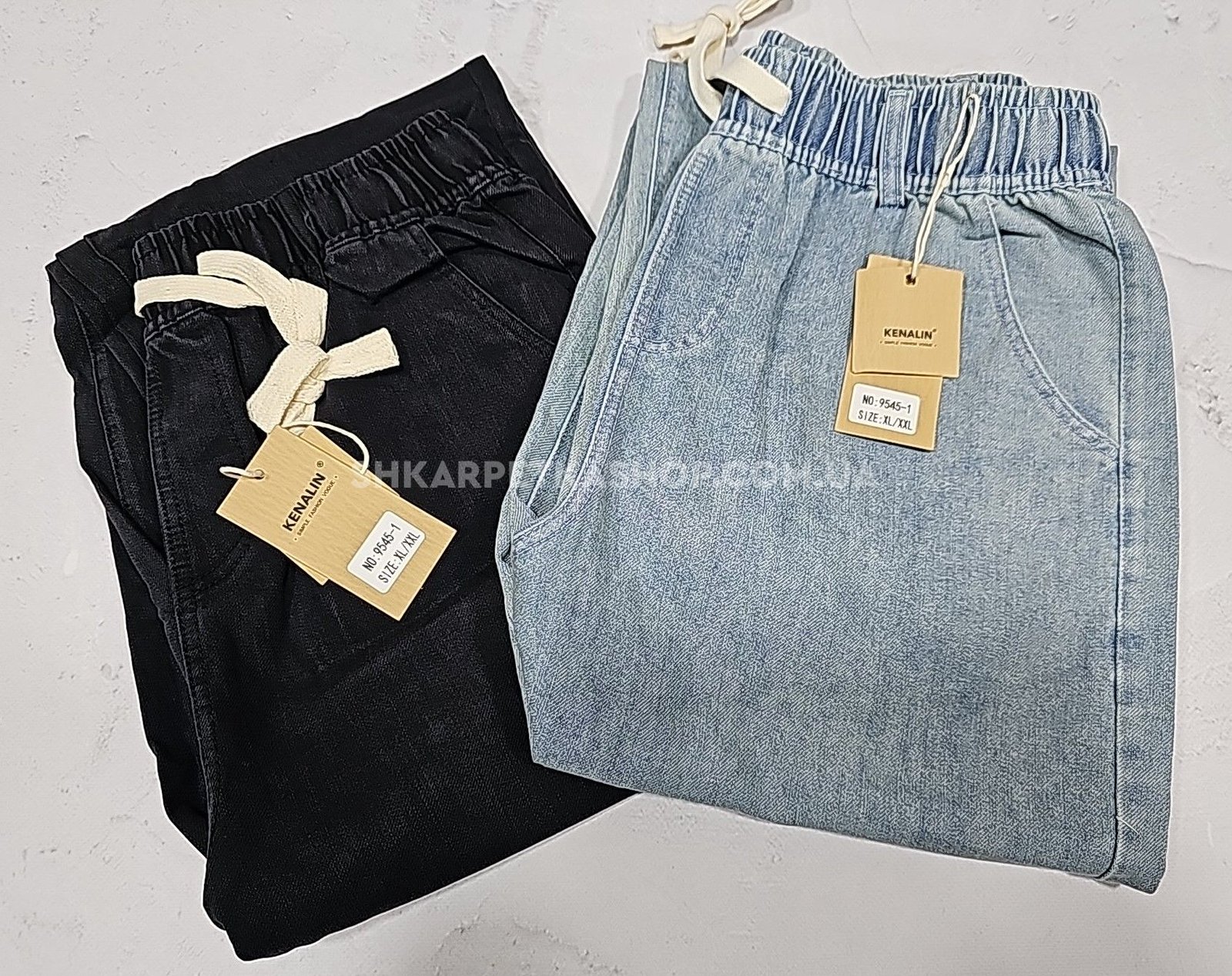 Джинси "Kenalin" 9545-1 із щільного джинс-котону, спереду та ззаду кишені, пояс на гумці, р. XL/2XL-(44-46), 2XL/3XL-(46-48), 3XL/4XL-(48-50), 4XL/5XL-(50-52) -(уп. 1 шт)