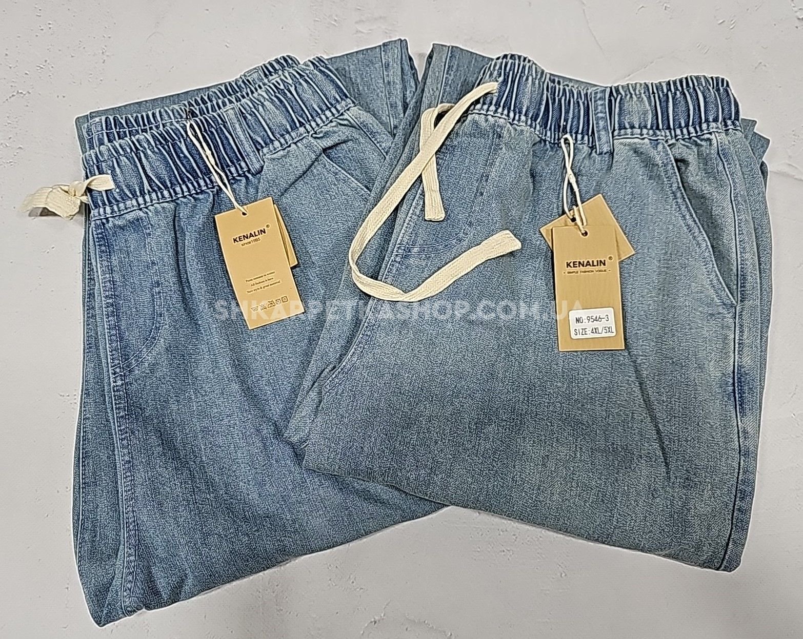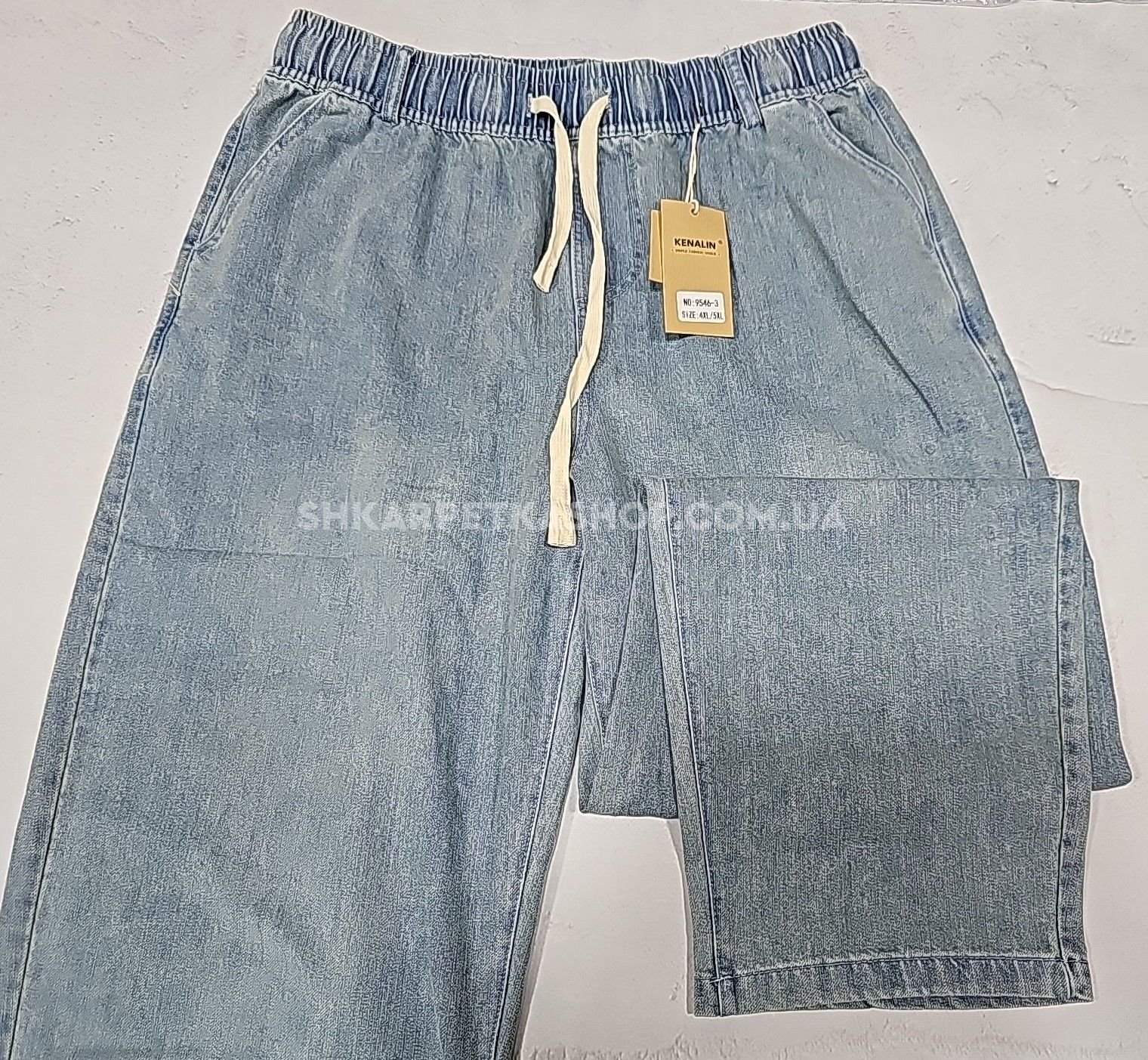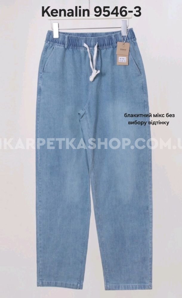 Джинси "Kenalin" 9546-3 із щільного джинс-котону, спереду та ззаду кишені, пояс на гумці, р. 4XL/5XL-(48-50), 5XL/6XL-(50-52), 6XL/7XL-(52-54), 7XL/8XL-(54-56) -(Блакитний мікс -Без вибору відтінку!!!)