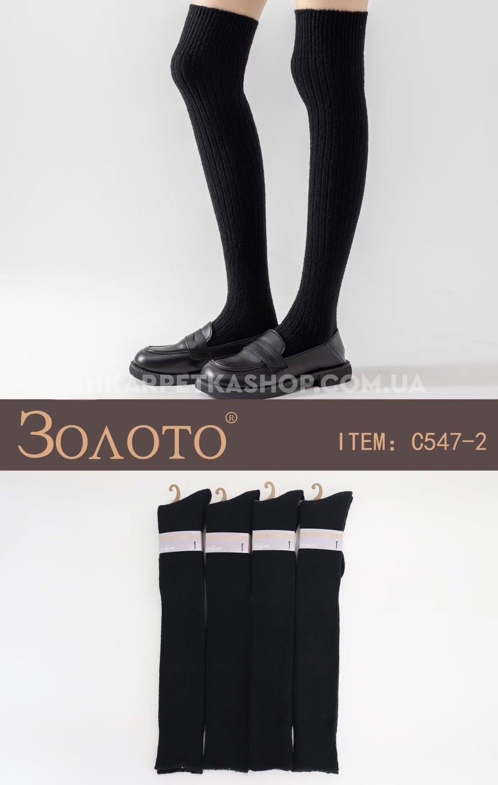 Гольфи / заколінки "Золото" С-547-2 вовняні жіночі, р. 36-41 -(Чорні в рельєфний рубчик) -уп. 12 шт