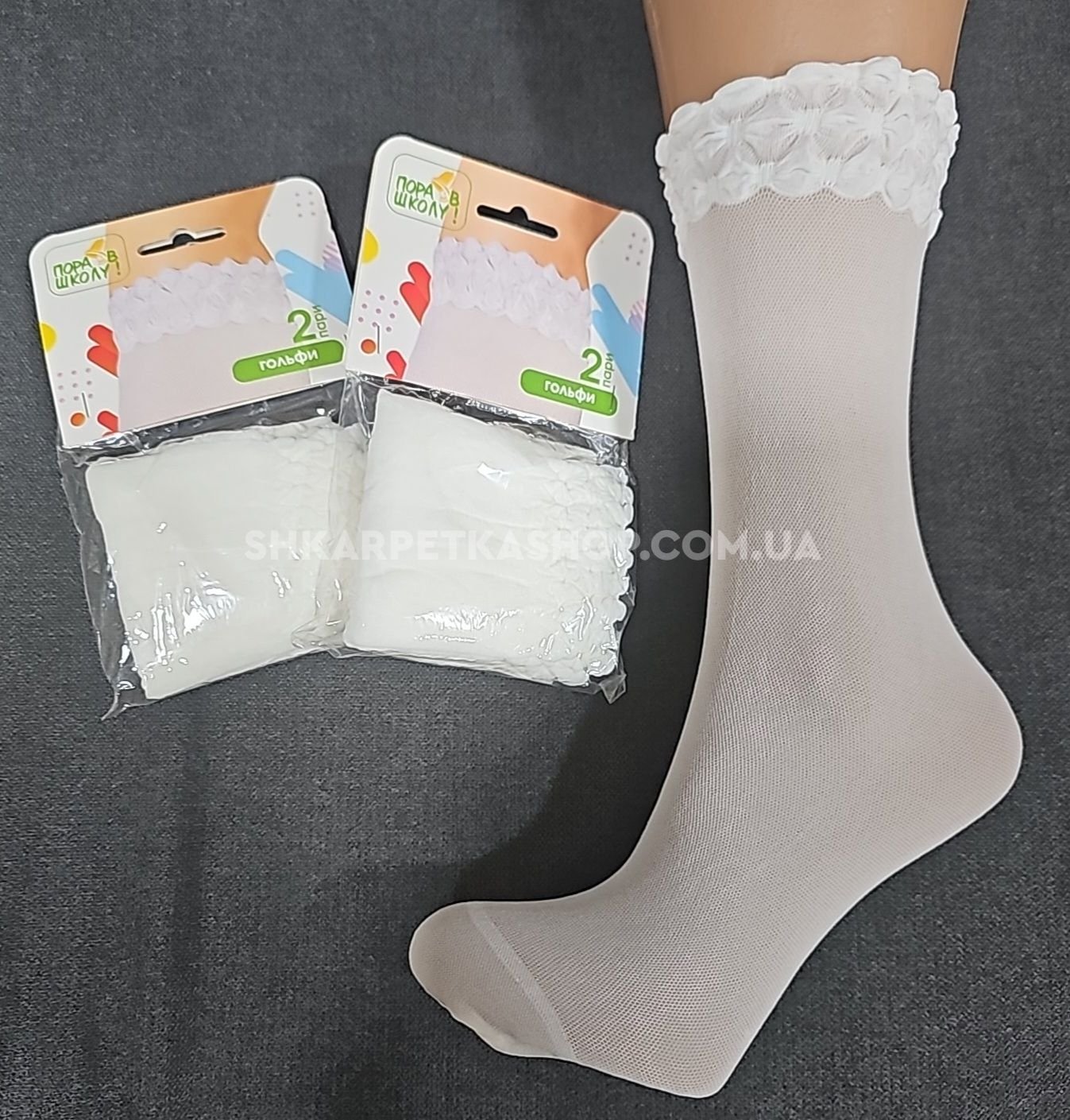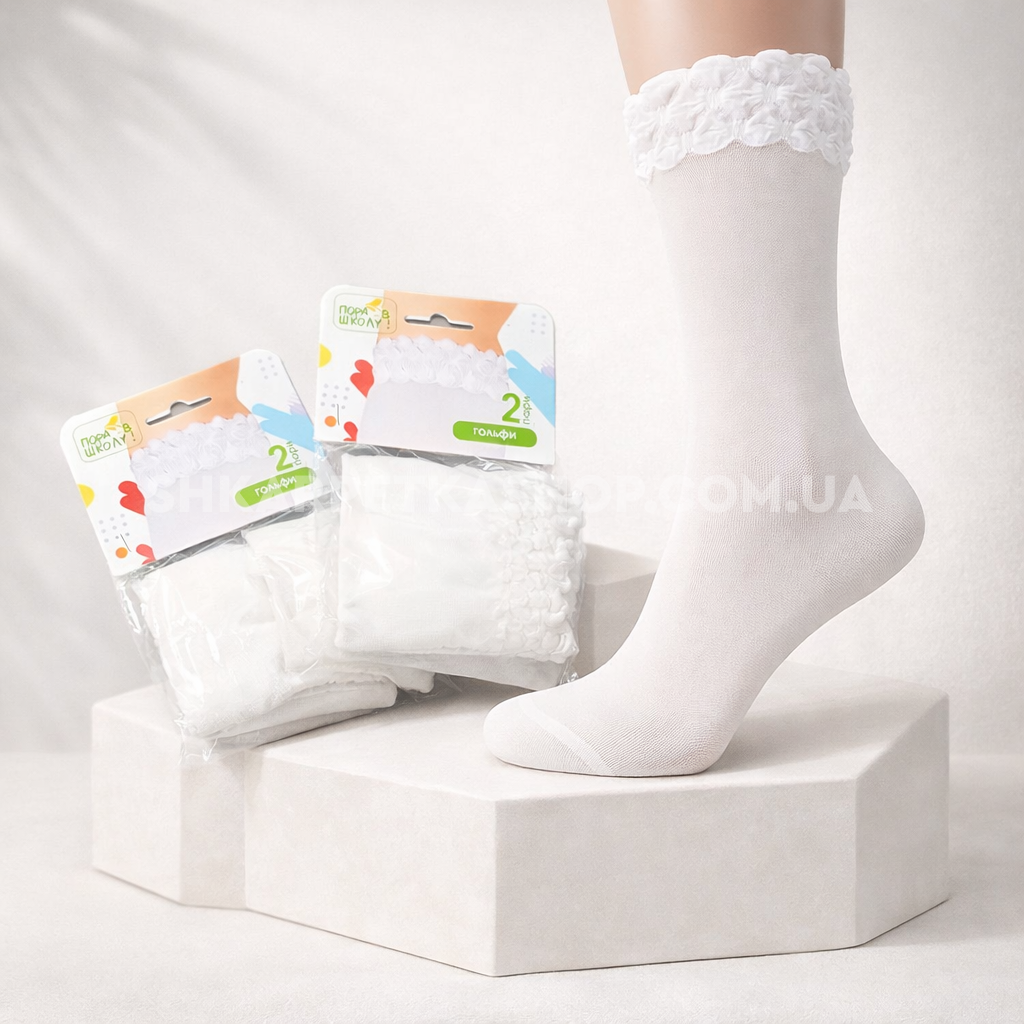 Гольфи дитячі /підліткові "Пора в школу" арт. 0088-2 капронові "Мікросіточка" -(гольфи -білі в сіточку з рюшею-в уп- 1 пара)