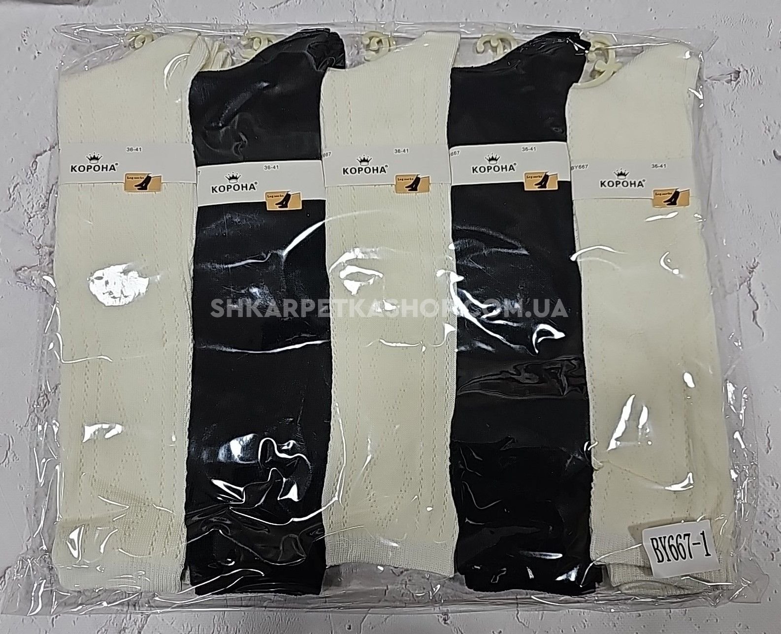 Гольфи /підколінки "Корона" BY-667-1 шовк /cotton, р. 36-41 -асорті -(Молочні +чорні з вибитим візерунком) -уп. 10 шт