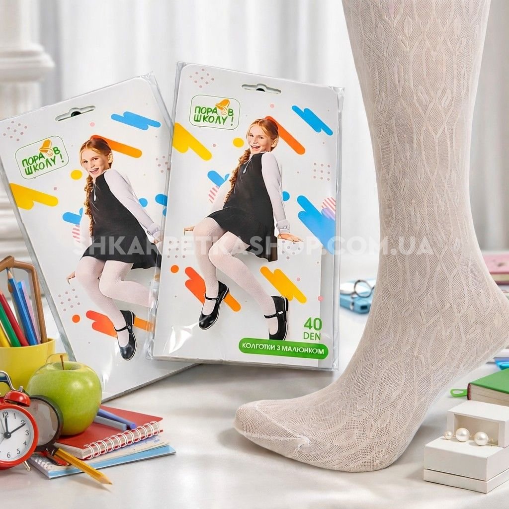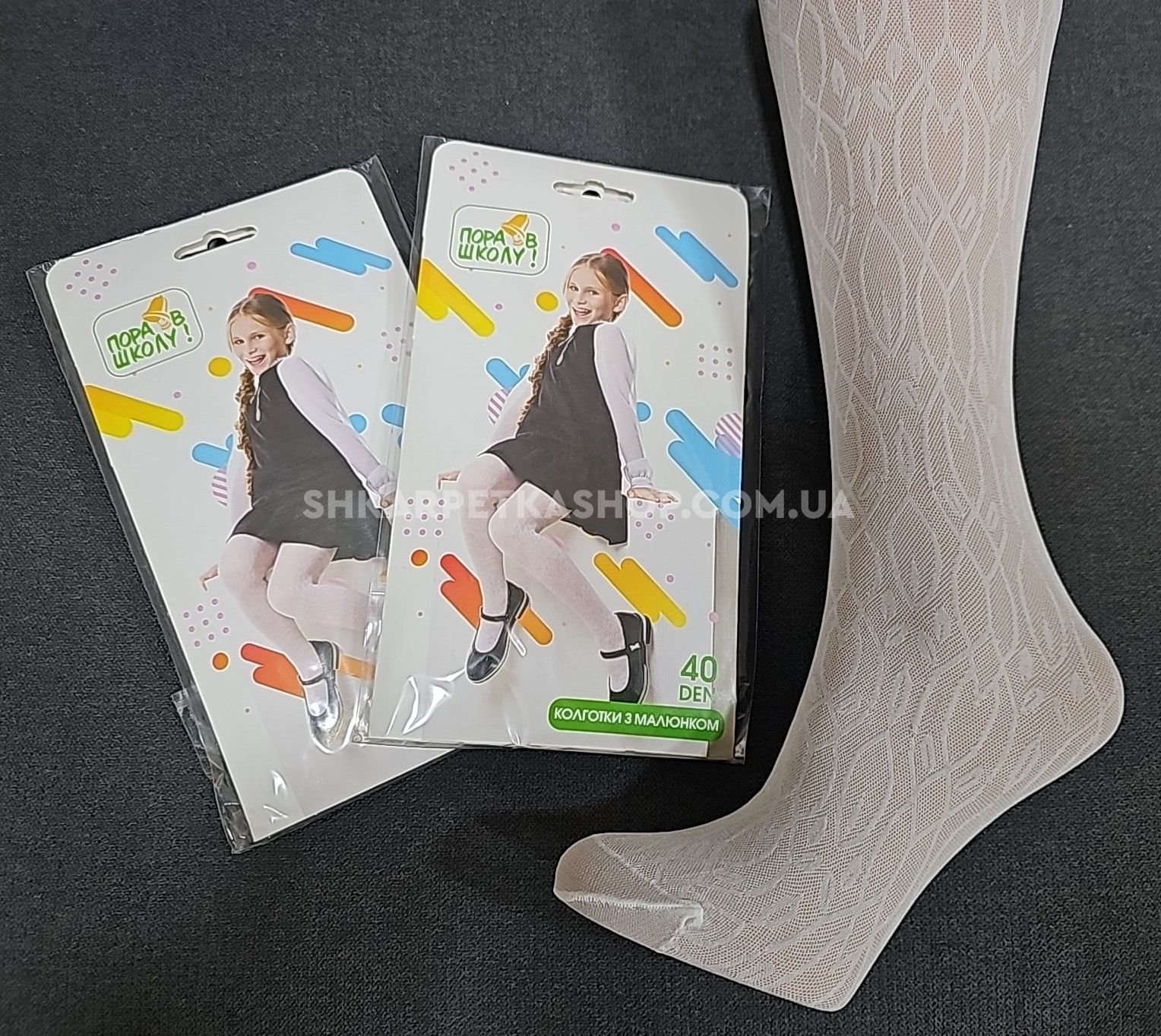 Колготки дитячі "ПОРА В ШКОЛУ" К-002 капронові 40 ден з малюнком, р. 3-(134-140), 4-(146-152) -(білі)