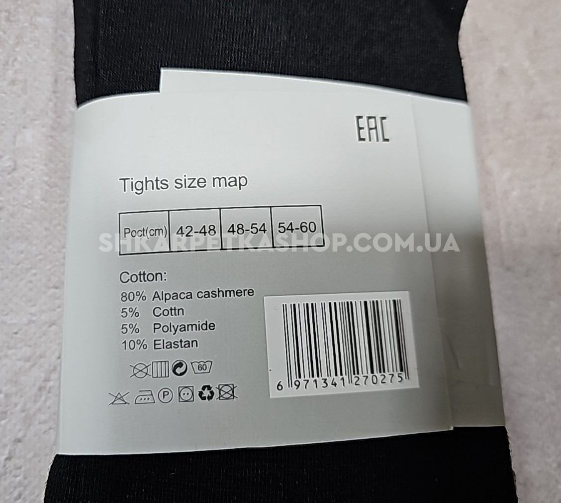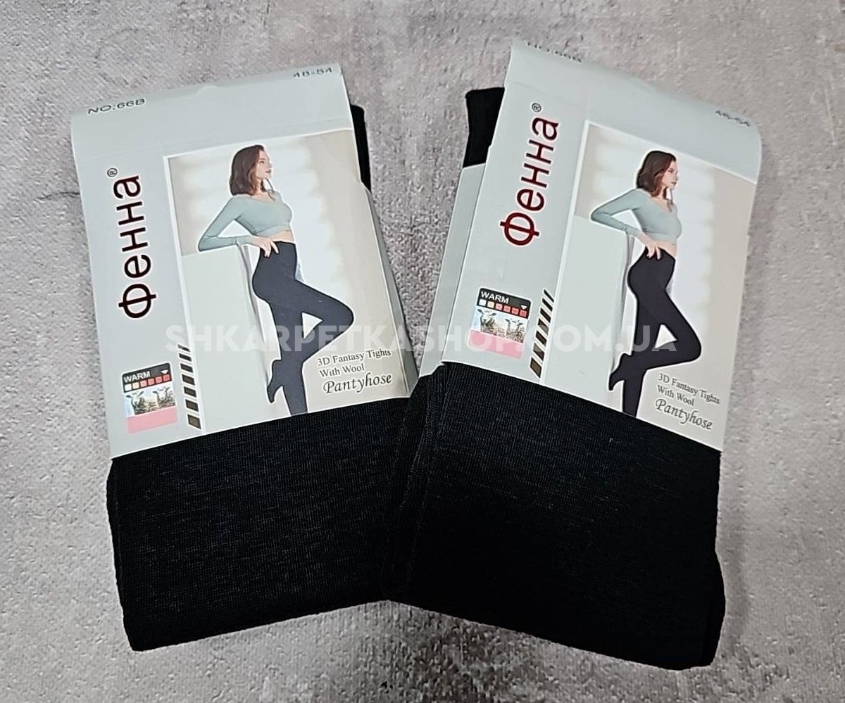 Колготки "ФЕННА" 66-В-1-(48-54-чорні) альпака кашемір на флісі, з формою п'яти, 2 шви -(чорні) -уп. 1 шт