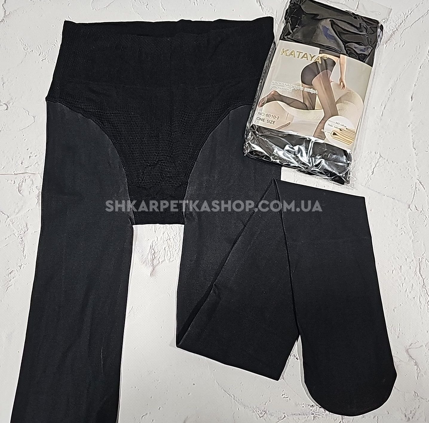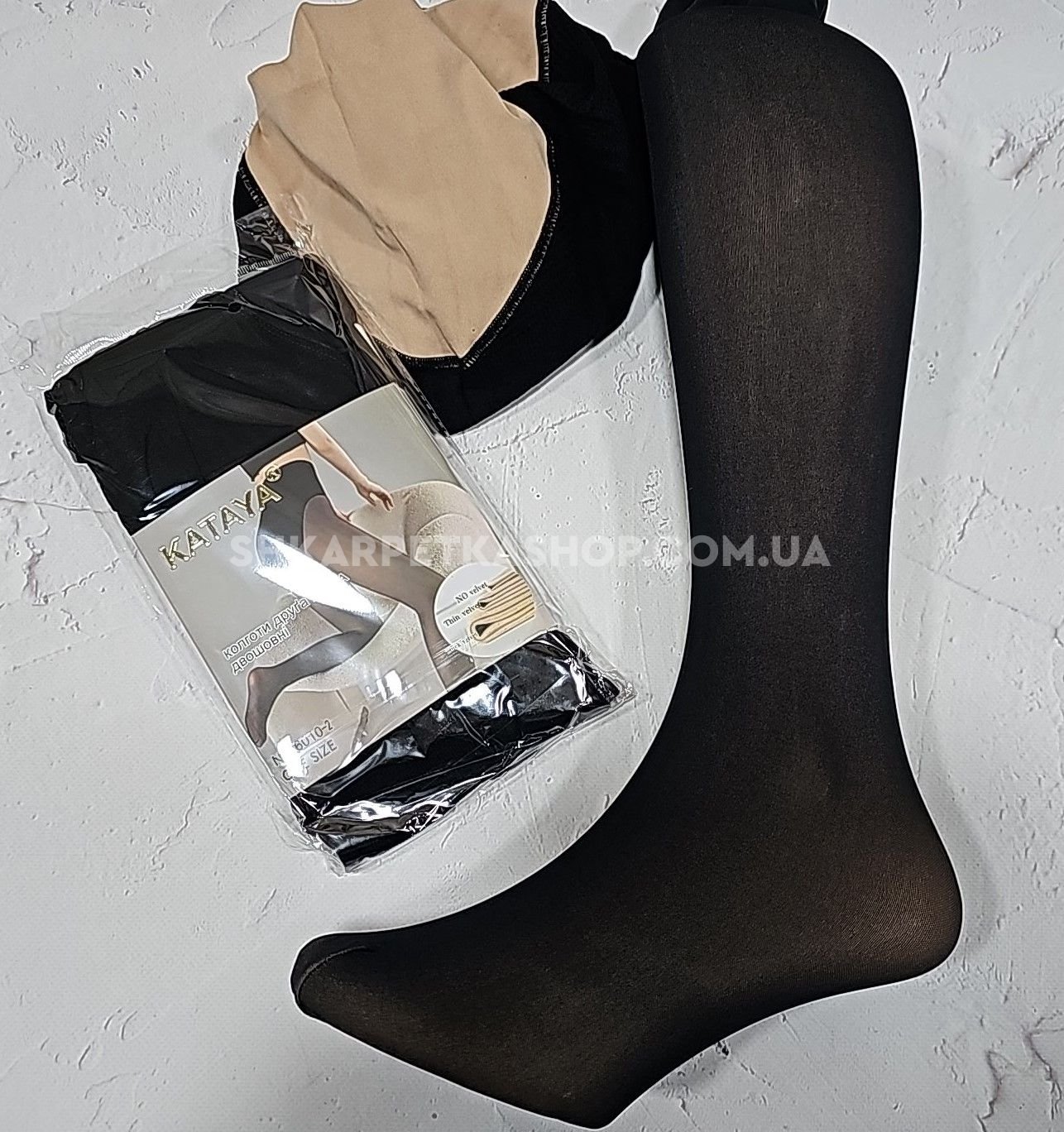 Колготки "KATAYA" 6010-2 капронові з імітацією тонких на бежевій основі з ефектом голих ніжок, зверху стягуючі трусики push-up, р. 46-52 -(чорні) -уп. 1 шт
