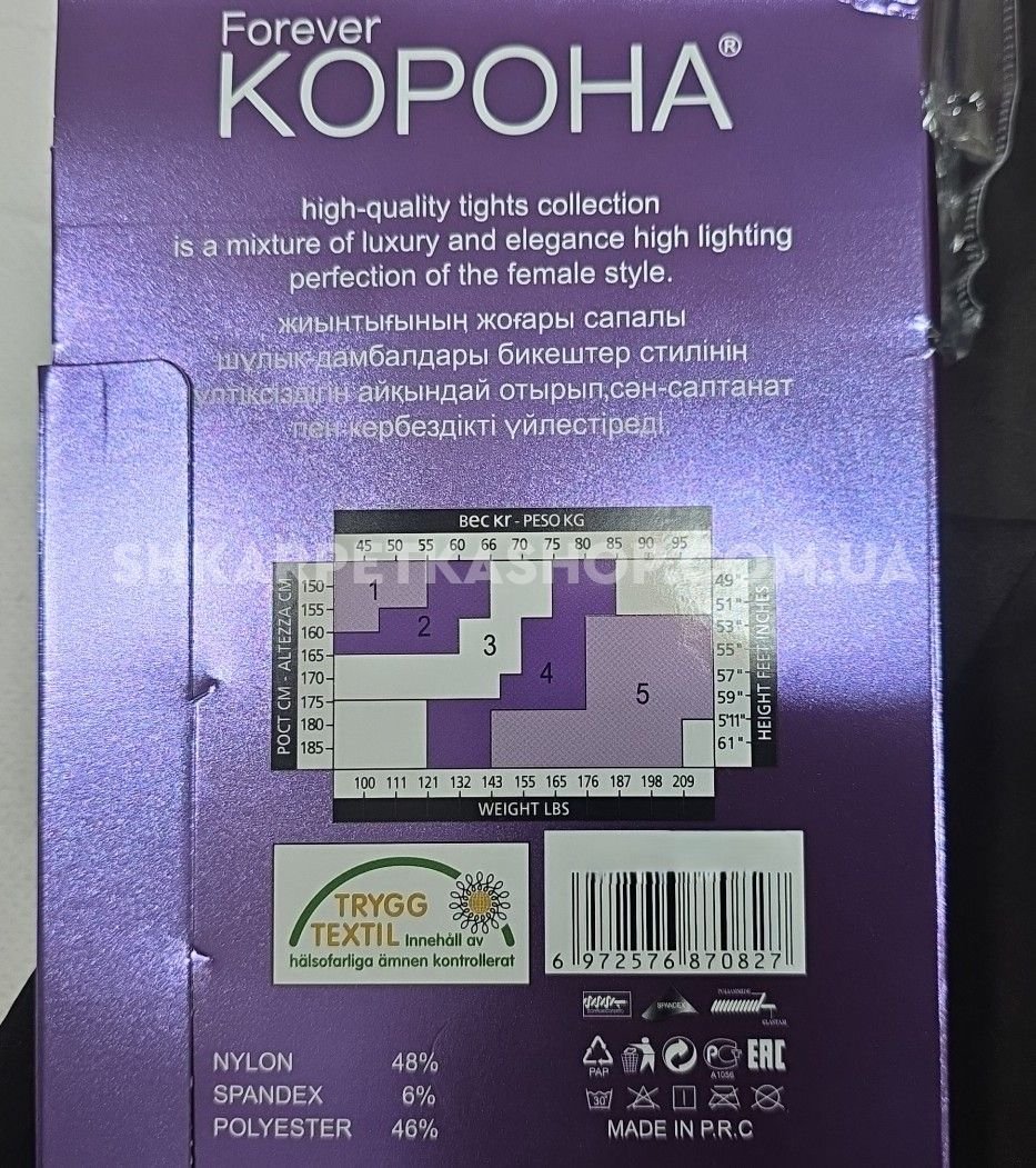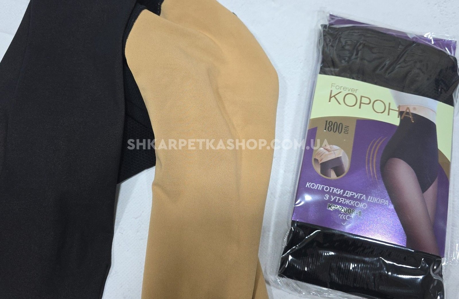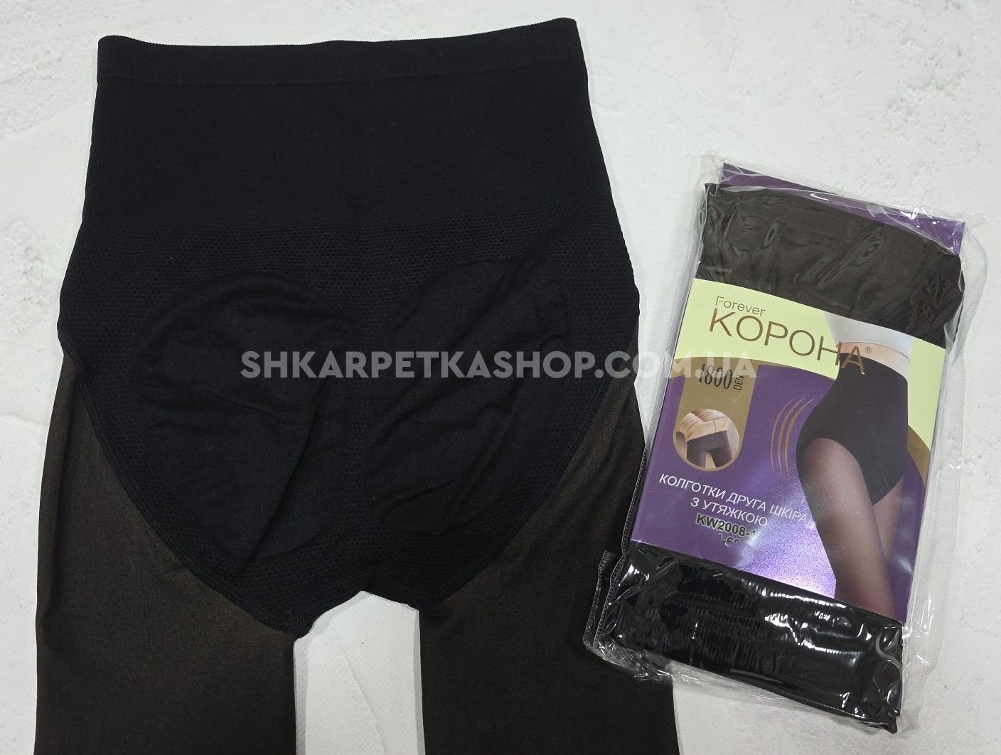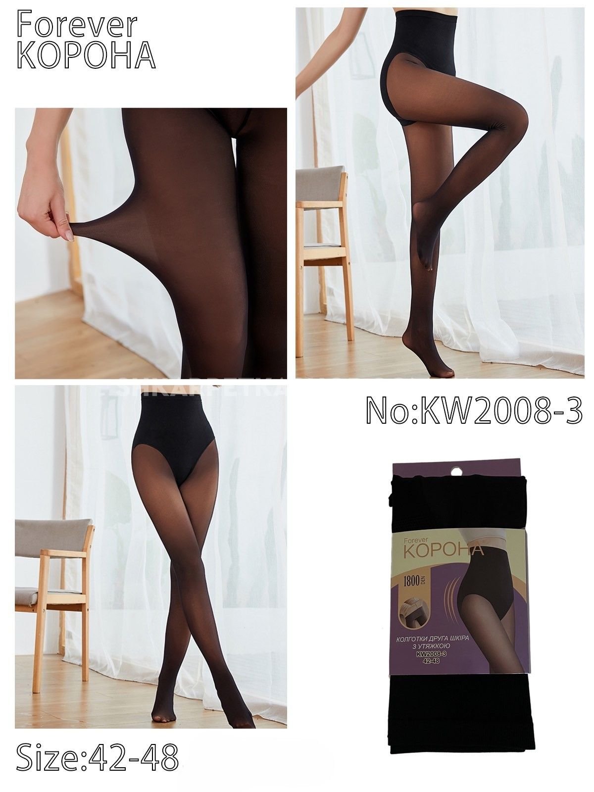 Колготки "Корона" KW-2008-3 /42-48 гладкі капронові з імітацією тонких, щільність 1800 den на бежевій основі з ефектом голих ніжок 40 ден, зверху підтримуючі трусики з ефектом push-up, на р-р: 42-46 -(чорні) -уп. 1 шт