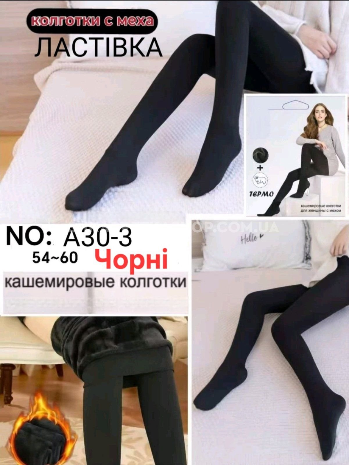 Колготки "Ластівка" А-30-3-(54-60-Чорні) кашемірові з хутряним напиленням +з формою п'яти, позаду 2 шви